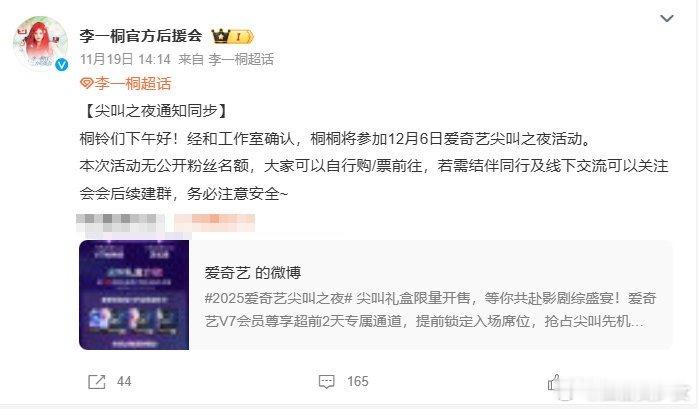 李一桐确认出席尖叫之夜!期待红毯