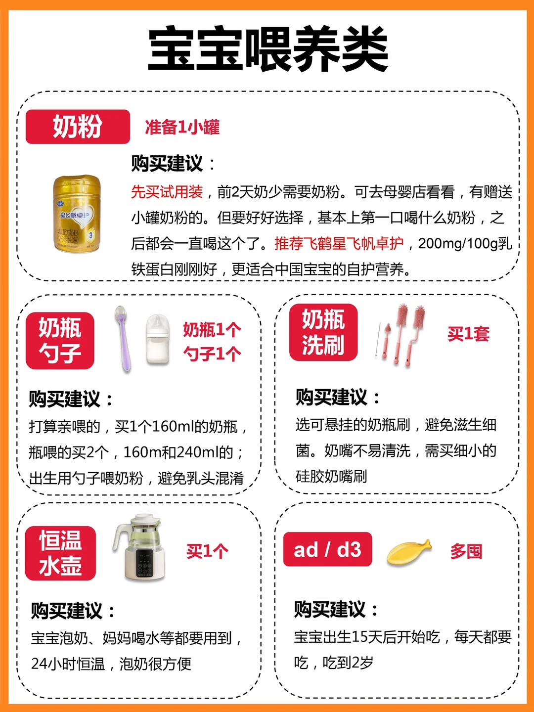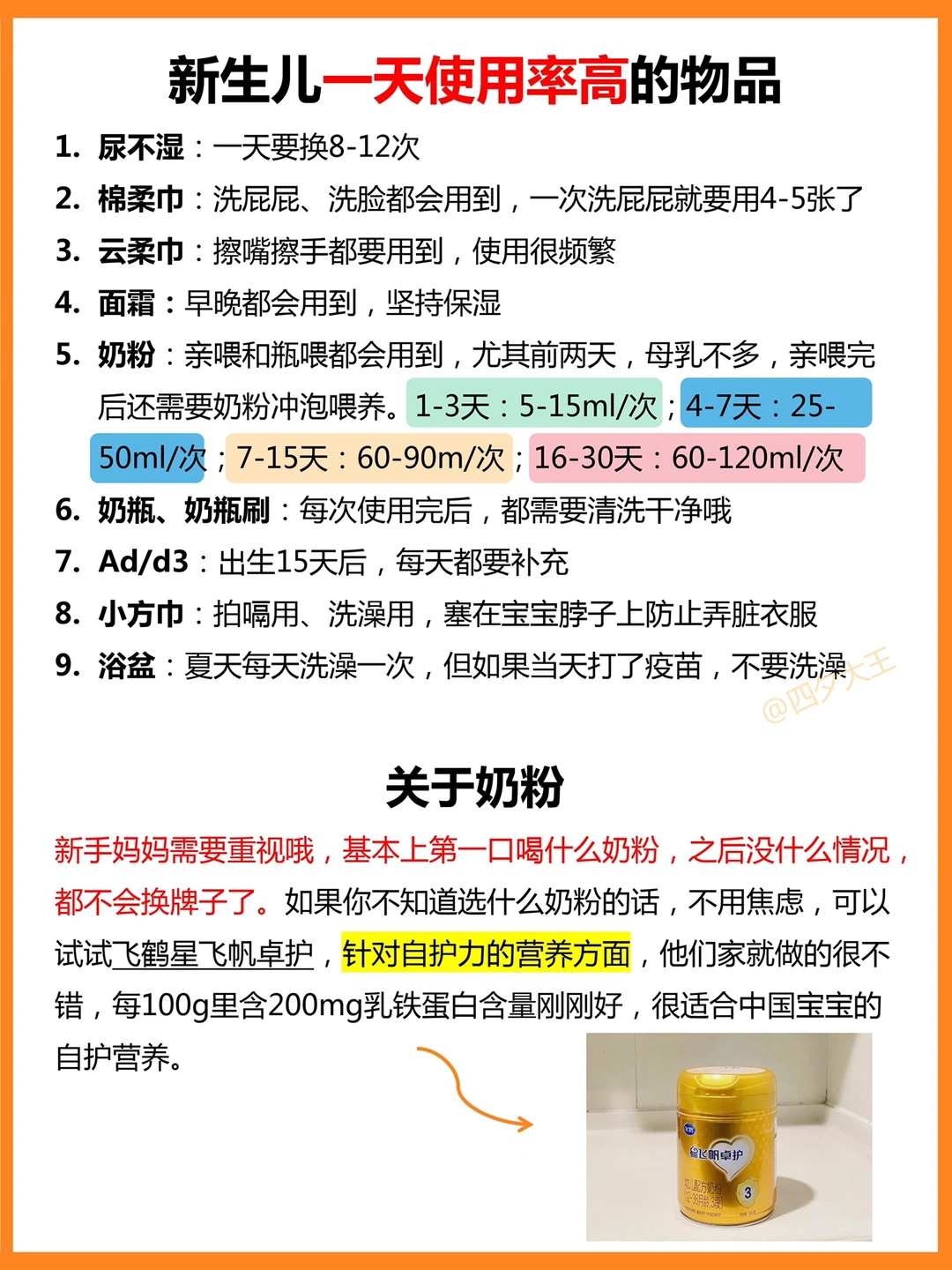 ▪️大罐配方奶:如果你打算亲喂的,大罐配方奶吃不完很浪费,新生儿可以先买小罐的。但无论如何,第1罐奶粉都很重要,需重视哦!