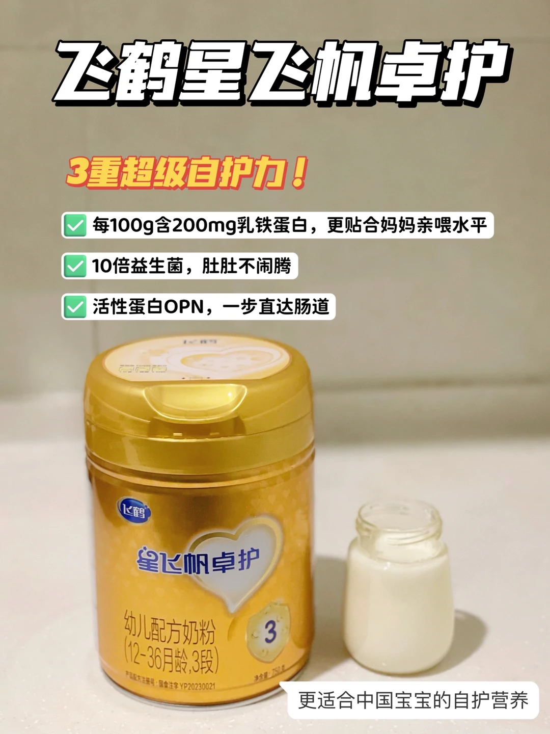 👉如果新手妈妈不会选的话,可以试试飞鹤星飞帆卓护,飞鹤奶粉真的很适合中国宝宝体质,针对自护力的营养方面,他们家就做的很不错,3重超级自护力: