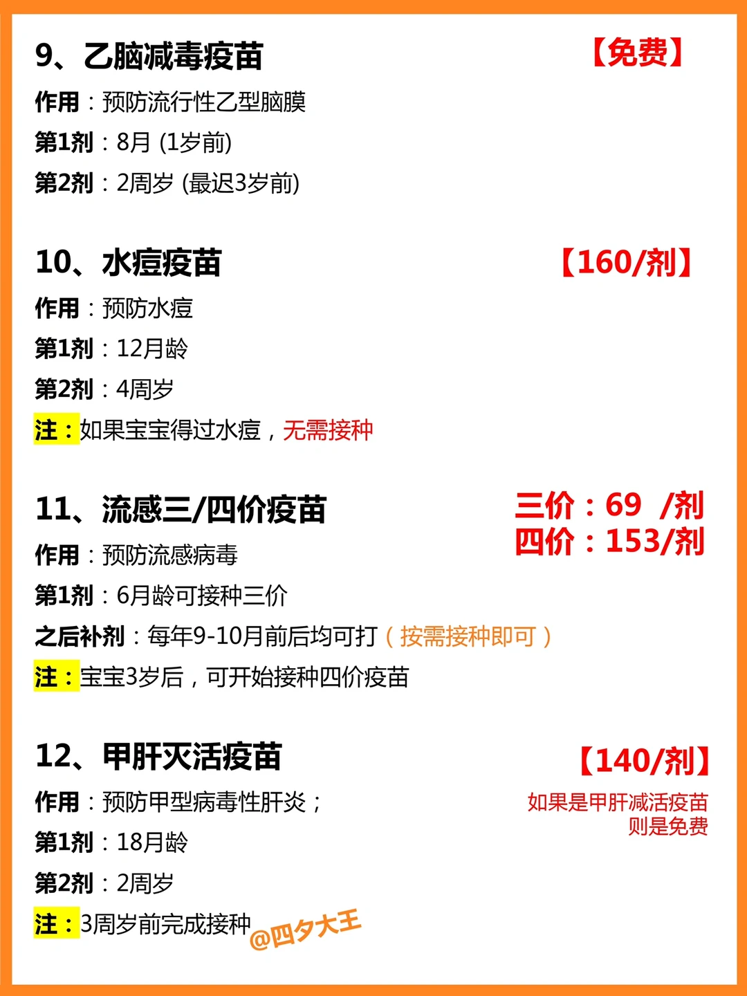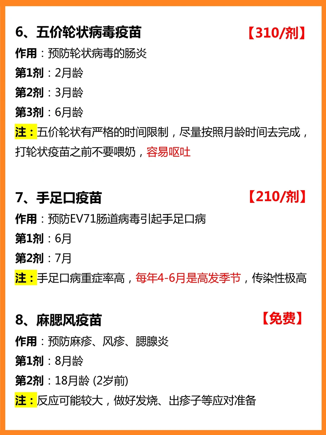 ⭕️其中,必打的自费疫苗(二类疫苗):