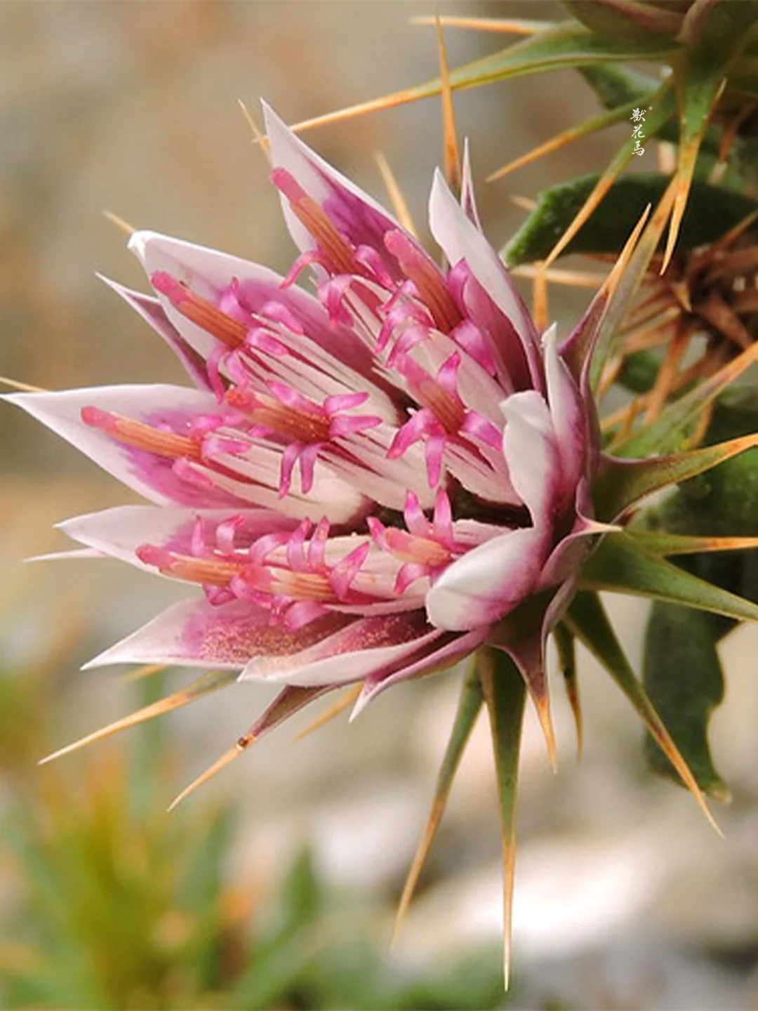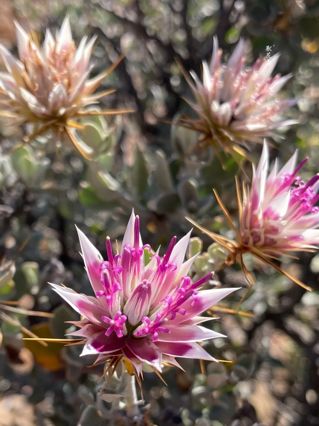 🌵✨【荒漠中的金属精灵】✨🌵 ▫️𝙉𝘼𝙈𝙀 「刺花草」Macledium spinosum ▫️𝙁𝙇𝙊𝙒𝙀𝙍 𝙎𝙃𝙊𝙒 ✨拥有金属质感银白色苞片,花朵凋谢后苞片依然保持绚丽 ✨形态独特的刺状叶片与苞片形成鲜明对比 ✨干燥后形态颜色持久不变,是天然干花优质材料 ▫️𝙃𝘼𝘽𝙄𝙏𝘼𝙏 🌵原产于非洲南部干旱地区 ☀️极度耐旱耐贫瘠,适应砂质碱性土壤 🌡️喜全日照环境,生长适温15-28℃