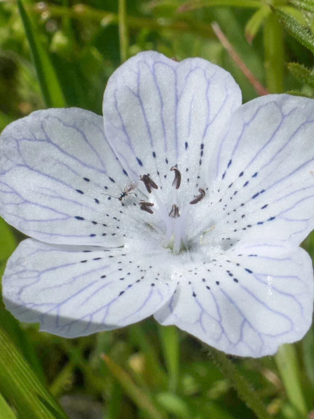 🌿✨【春日里的蓝色梦境】✨🌿\n▫️𝙉𝘼𝙈𝙀\n「白斑喜林草」Nemophila menziesiivar. atomaria\n▫️𝙁𝙇𝙊𝙒𝙀𝙍 𝙎𝙃𝙊𝙒\n✨花瓣浅蓝色,散布细碎白色斑点,如星空般梦幻\n✨植株低矮匍匐,开花时如铺展的蓝色花毯\n✨加州原生野花的园艺明星,英文名\"Baby blue eyes\"灵动贴切\n▫️𝙃𝘼𝘽𝙄𝙏𝘼𝙏\n🌱原生美国加州及西北太平洋沿岸\n🌞喜凉爽日照充足环境,忌高温高湿\n🌧️适宜排水良好的沙质土壤\n🌱一年生草本,春季开花,花期集中灿烂\n▫️𝙂𝘼𝙍𝘿𝙀𝙉 𝙏𝙄𝙋𝙎\n☁️栽培介质:沙质壤土混合腐殖土,保持排水通畅\n🌥️温度管理:耐寒不耐热,夏季需遮阴通风\n🎐播种时机:暖地秋播观春花,寒地春播赏夏花\n