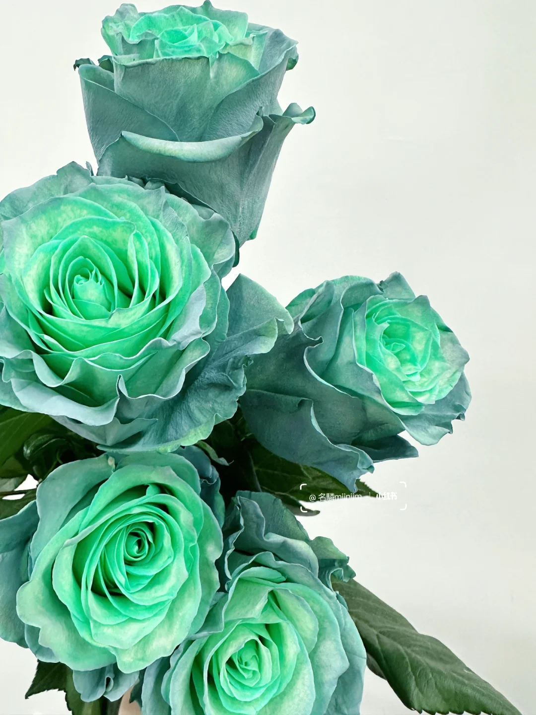 寻思你也不抹茶🍵,不灰啊[扯脸H] 花材名:“抹茶灰”厄瓜多尔玫瑰 是过节的时候买的,买了5扎,颜色都不太一样,这个要艳一些,荧光一点,另外几个是正常的,灰中泛绿的颜色,更加灰一些,不知道是批次不同,染料深浅不同,还是发错品种,但是这个亮亮的也很抢眼。 观察它的制作方法: 1️⃣吸薄荷绿的染料 2️⃣再把边缘喷上灰绿色的喷漆 差不多厄瓜多尔玫瑰的制作方式都是如此,但是因为国产花的花头暂时比不上厄玫的大小,所以DIY出来会有差距,现在国内也有在做吸色玫瑰在卖,希望有朝一日能成功吧