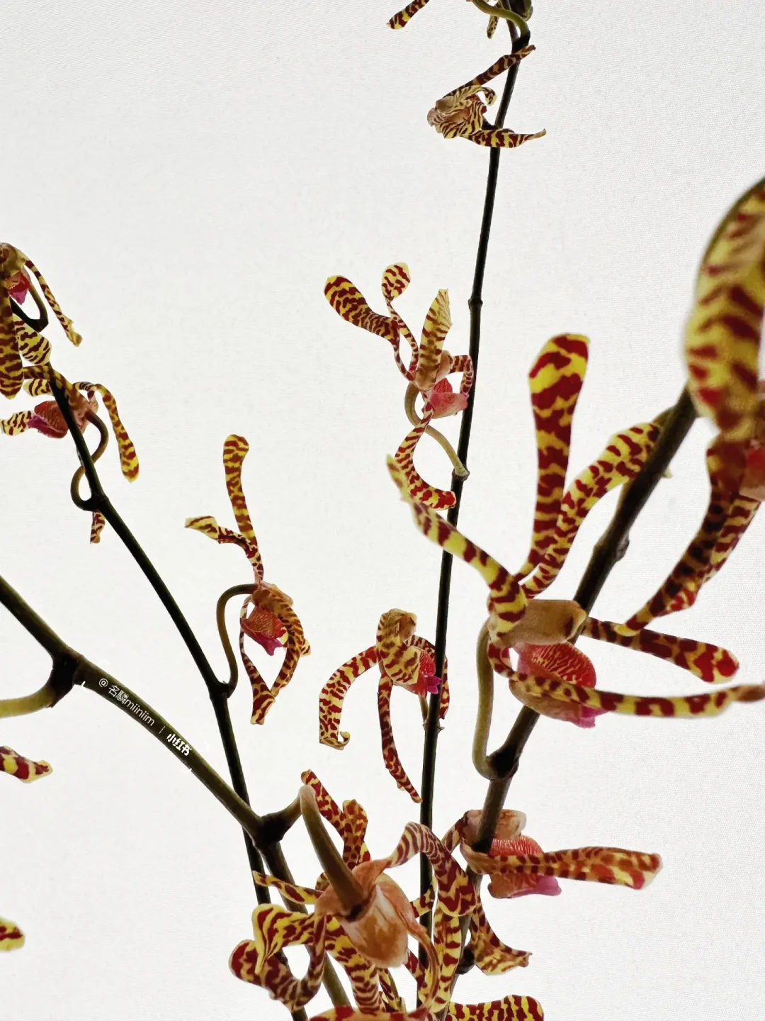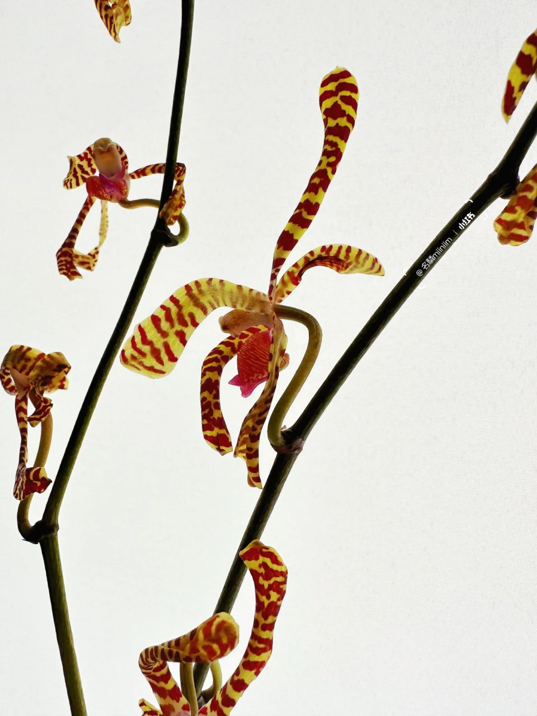 这个品种被切花界称为猴子兰[偷笑R],属于千代兰的一种,千代兰相比于其他鲜切兰花来说,花瓣更加细长。茎杆也会更加修长一些,花姿优雅动人。养护比较简单,常作为切花供瓶插或其他花艺设计之用,为室内装饰的重要花材。