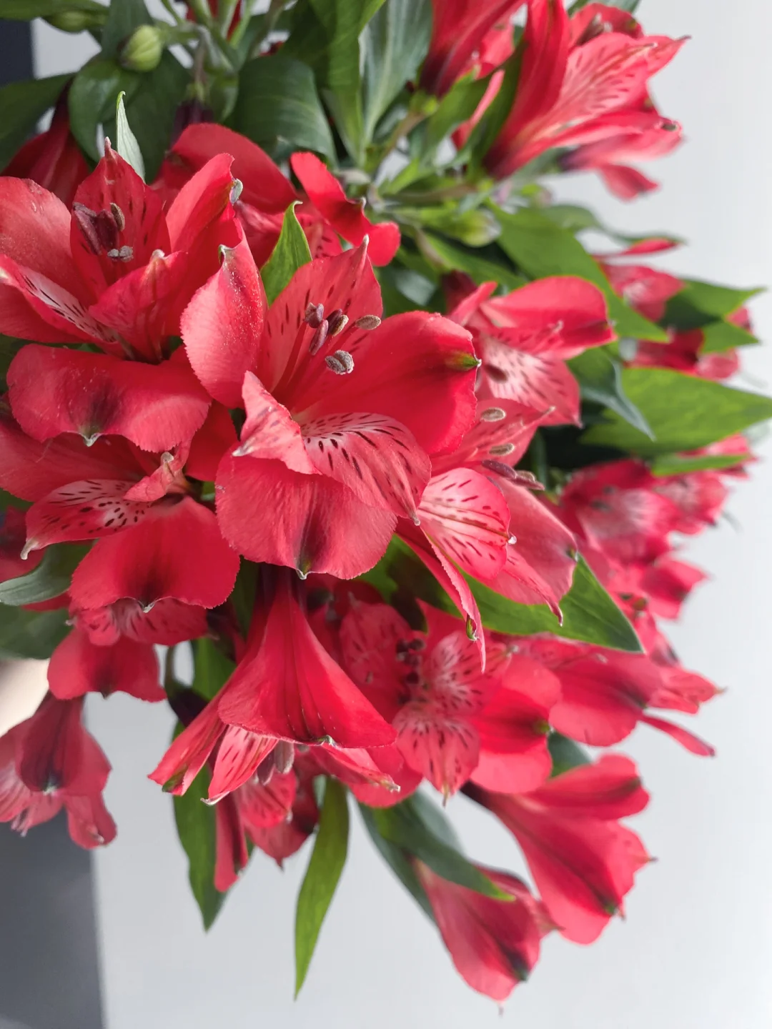 ❤️💚特点:原产于智利,其花朵类似于杜鹃和水仙,但叶子和茎像百合花,内轮有紫色或红色条纹及斑点,一支花有多个花头。