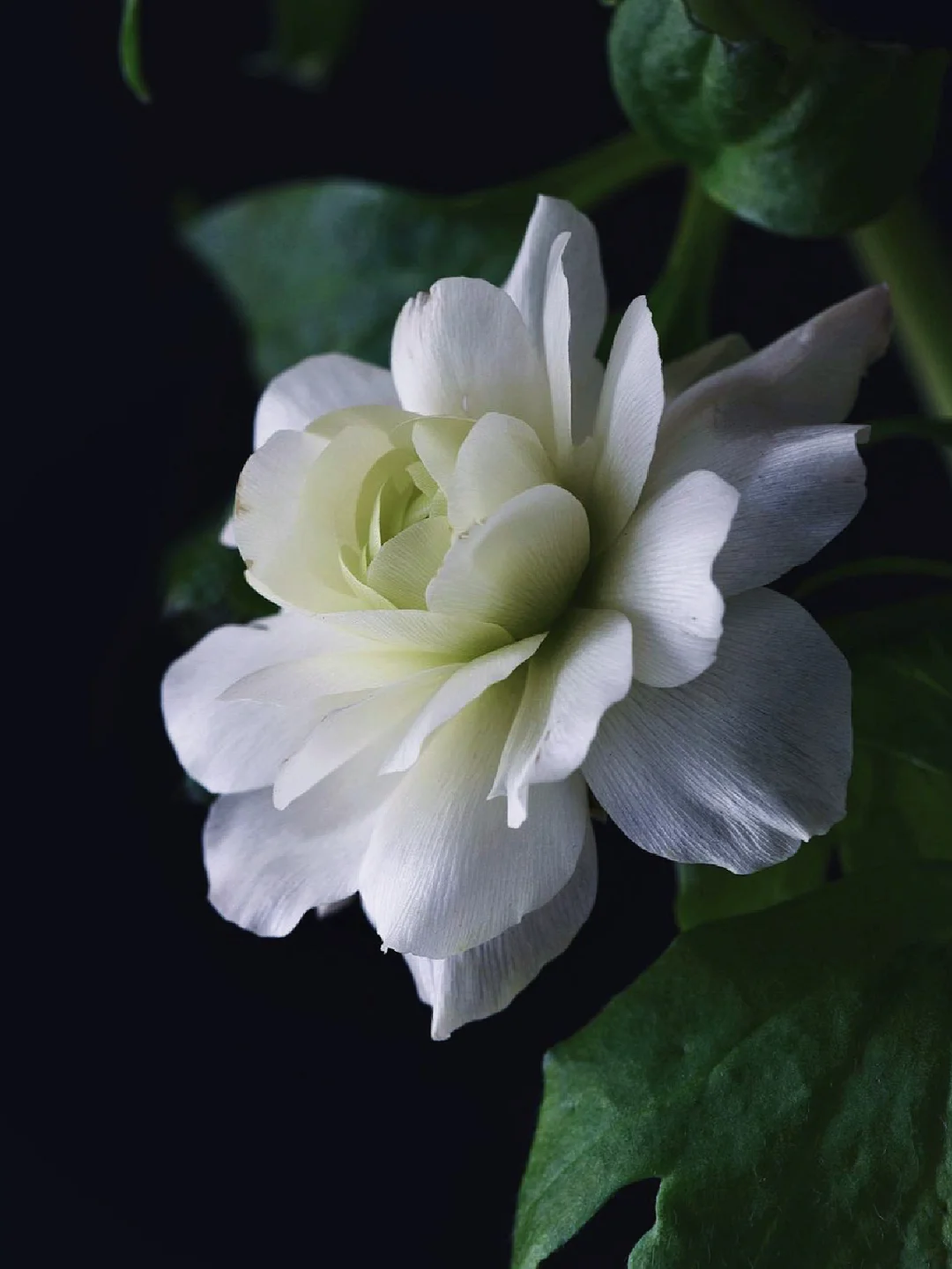 蝴蝶洋牡丹也是单瓣花毛茛的一种,花瓣十分轻盈,层数少,姿态柔和优雅,正如她们的名字一样轻盈。最值得一提的是它花瓣在阳光下的蜡质花材,像丝绸一样闪闪发光,是很少见的珠光感花材。