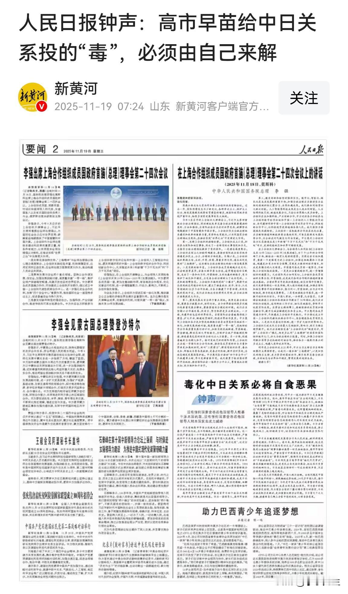 人民日报钟声评论指“高市早苗给中日关系投毒,必须由自己来解”,此类表述在当前的斗争语境中,未能精准切中矛盾要害,也缺乏应有的战略清晰度,反而隐约流露出某种策略上的保守与迁就。 必须清醒认识到,当前中日关系陷入困局,完全是日方一系列主动挑衅行为所致。无论是屡次干涉中国内政,还是为两岸统一进程蓄意制造障碍,破坏性行为皆出自日方。在此背景下,如果我们仍固守“维护中日关系”的旧有话语,试图以强调双边关系来维系表面和平,不仅难以回应现实挑战,更可能暴露战略层面的被动。 当对方已将对华挑衅常态化、将对峙立场政策化,我们若继续拘泥于“维护关系”的叙事框架,实际上已落后于斗争形势的发展。这不是在展现大国气度,而是在战略判断上显现出滞后性。 在别人已经举枪瞄准之时,我们不应再空谈友谊的维系,而应坚定、明确地把斗争焦点置于对方的不当行为与应负责任之上。唯有如此,才能在复杂博弈中掌握话语主动,捍卫国家利益与尊严。