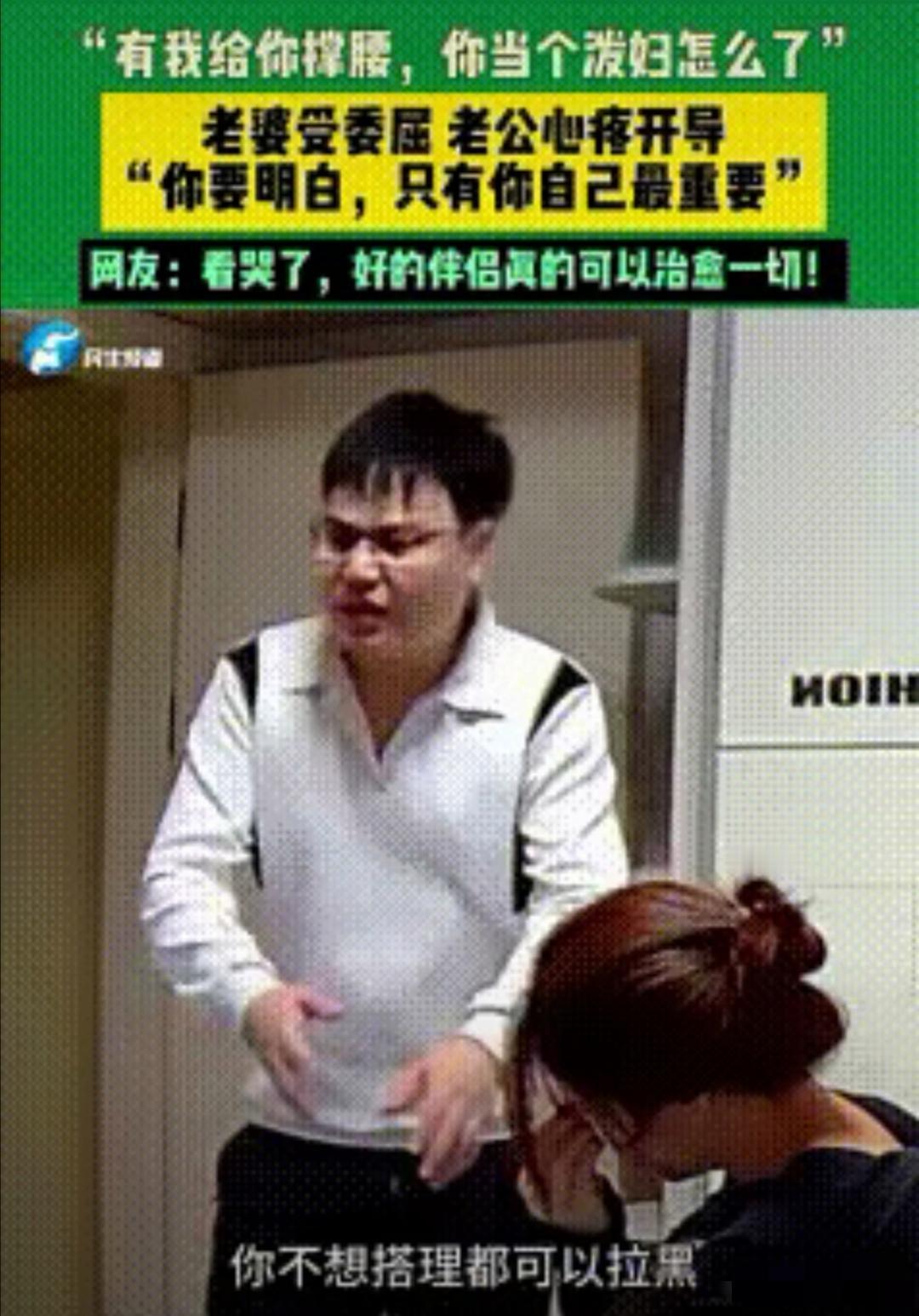 江西一男子下班回家,发现老婆在客厅哭泣,他以为是被谁欺负了,询问她怎么了?不料,老婆却只是一个劲擦眼泪,却不肯说原因!男子一下就猜到了,肯定又和自己妈妈闹矛盾了,他没有偏袒妈妈,而是直接安慰:"有我给你撑腰,你当个泼妇怎么了! 视频里,男子没有责怪妻子,反而安慰说:“我娶你是当老婆的,不是请回来当保姆的。积木乱就乱着,孩子玩得开心比啥都强;家里脏点不丢人,又不是天天办酒席待客。” 见妻子抬手擦眼泪,男子递过纸巾:有我在,你就算耍耍性子、跟我吵一架都没事。我妈赖你,你就得承认啊,你傻啊!你得记着,你自己的身子最金贵,真熬垮了,我和孩子咋办? 妻子听着,肩膀一抽一抽的。 早上她刚把孩子换下来的脏衣服泡进盆里,婆婆就站在门口瞅。“这地缝里还有灰,”婆婆嗓门不高,却像针似的扎人,“我儿子在外头累死累活,你在家连这点活儿都干不利索?” 她想说来例假肚子疼,昨晚孩子闹夜没睡好,话到嘴边又咽了。怕吵起来,邻居听见笑话。 哪成想,丈夫进门脱鞋的工夫就看明白了。 男子起身往厨房走,没一会儿端来杯热水,塞她手里。“我妈那脾气就这样,年轻时跟我爸也吵,你别往心里去。” 他蹲下来,看着妻子的眼睛:“这个家,你和孩子舒坦比啥都重要。活儿干不完就明天干,天塌不了。” 妻子抿着嘴笑了,眼泪却掉得更凶。 其实女人不怕累,就怕累了没人疼,受了委屈没人护。婚姻里最暖的,就是有人把你的难放在心上,懂你的沉默,护你的脆弱。 这样的男人,才是家里的定海神针。
