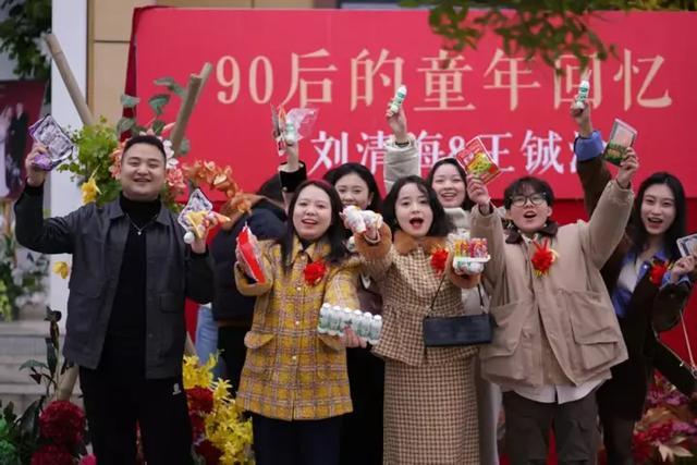 “我们淘来了娃哈哈、西瓜糖、星球杯、泡泡胶等一系列充满‘80后’‘90后’童年回忆的零食,布置方式也效仿了乡村小卖部的模样,不仅小朋友们眼巴巴地盯着,大朋友们也十分喜爱。”王铖渝笑着说,拍完照几分钟后,零食就被一抢而空,成为全场最受欢迎的打卡地。