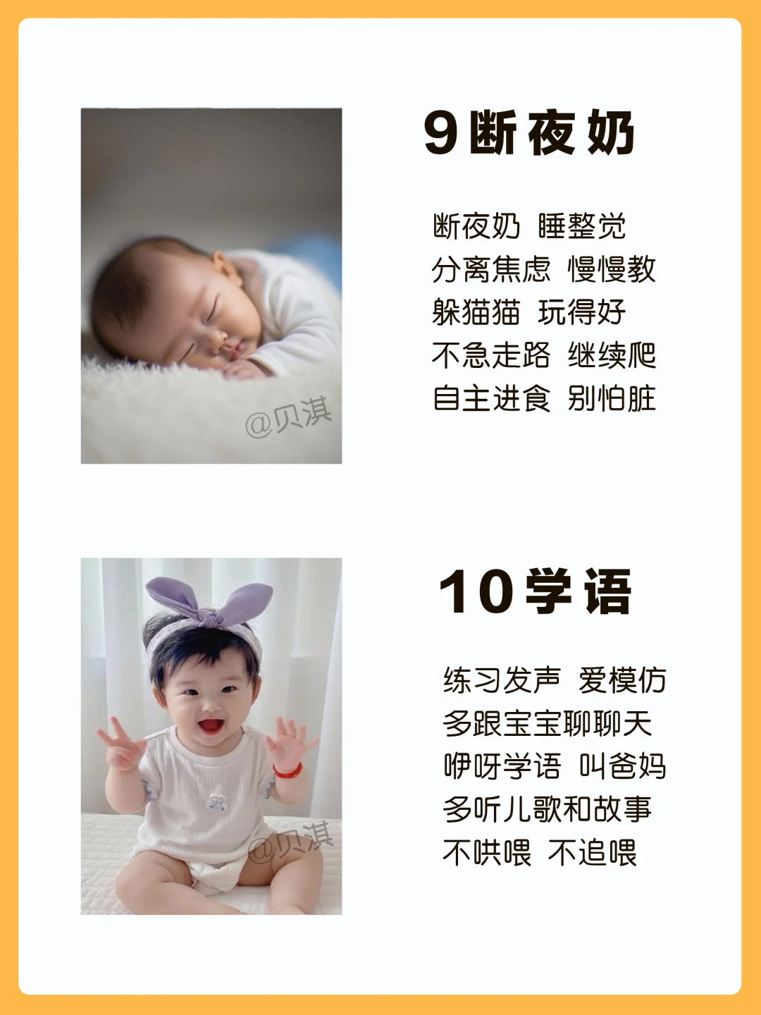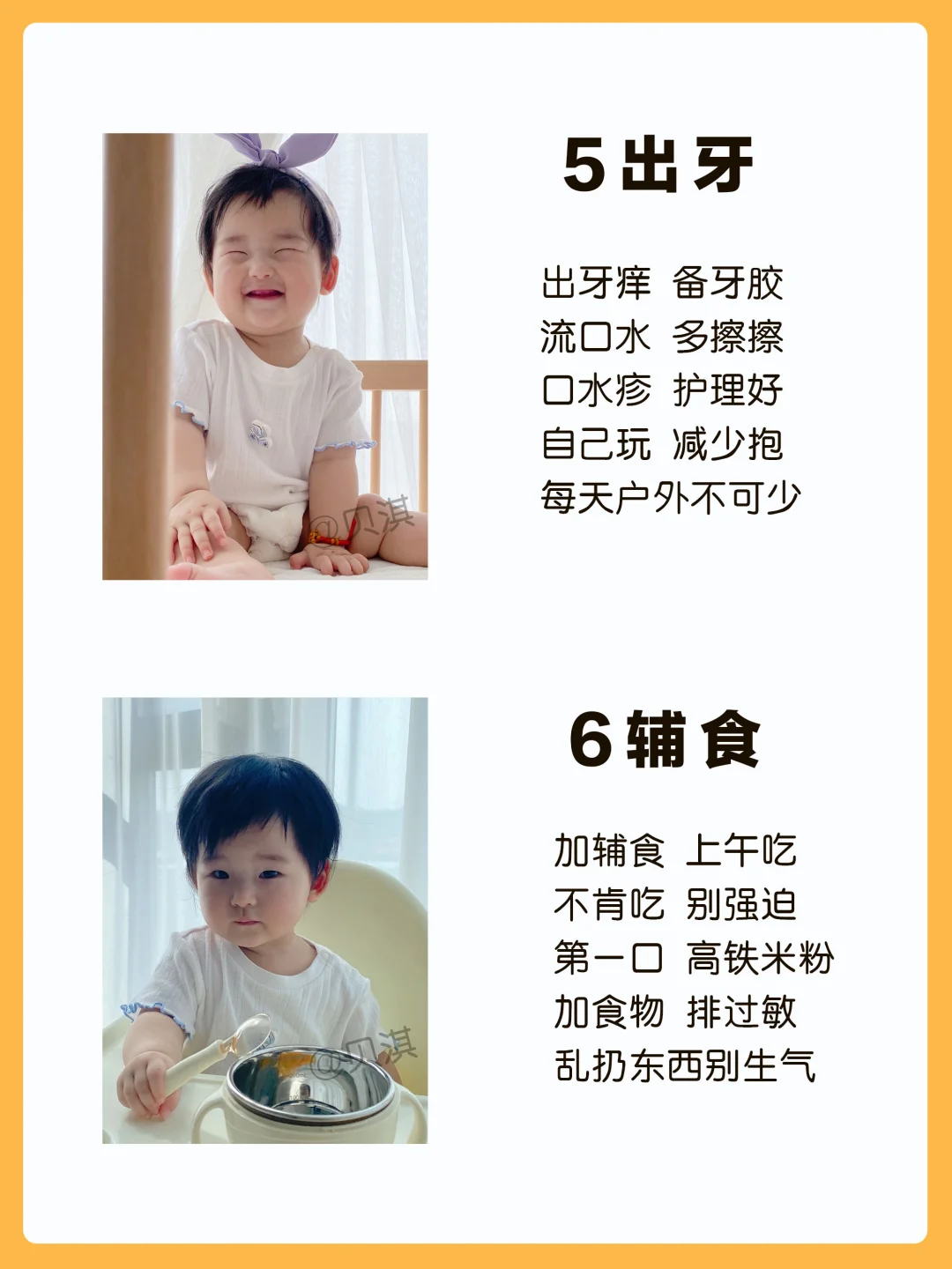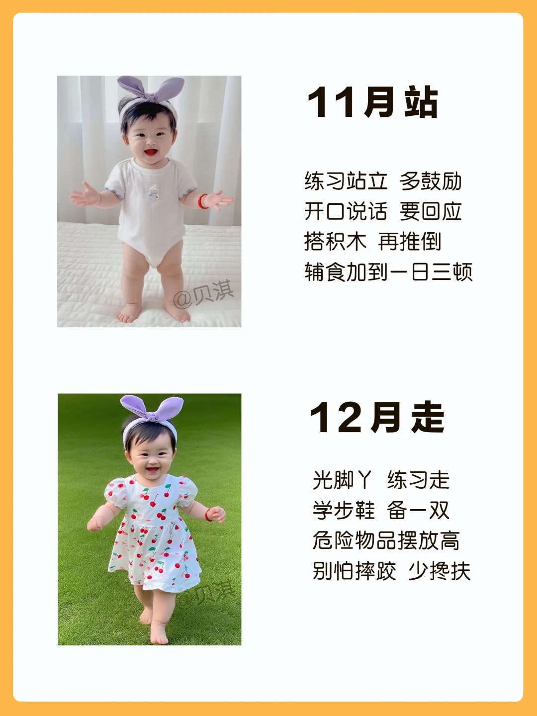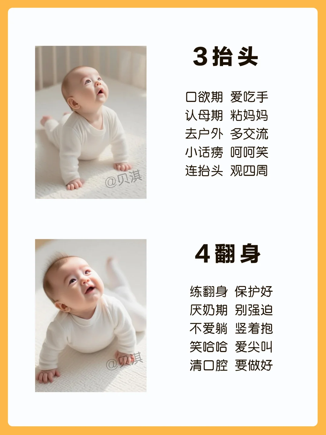宝宝0-12月生长发育进程顺口溜,新手宝妈保存好,按月龄给宝宝做早教~ 一月睡 二月闹 三抬头 四翻身 五出牙 六辅食 七会坐 八会爬 九断夜奶 十学语 十一站 十二走 你家宝宝进行到哪个月份了呢