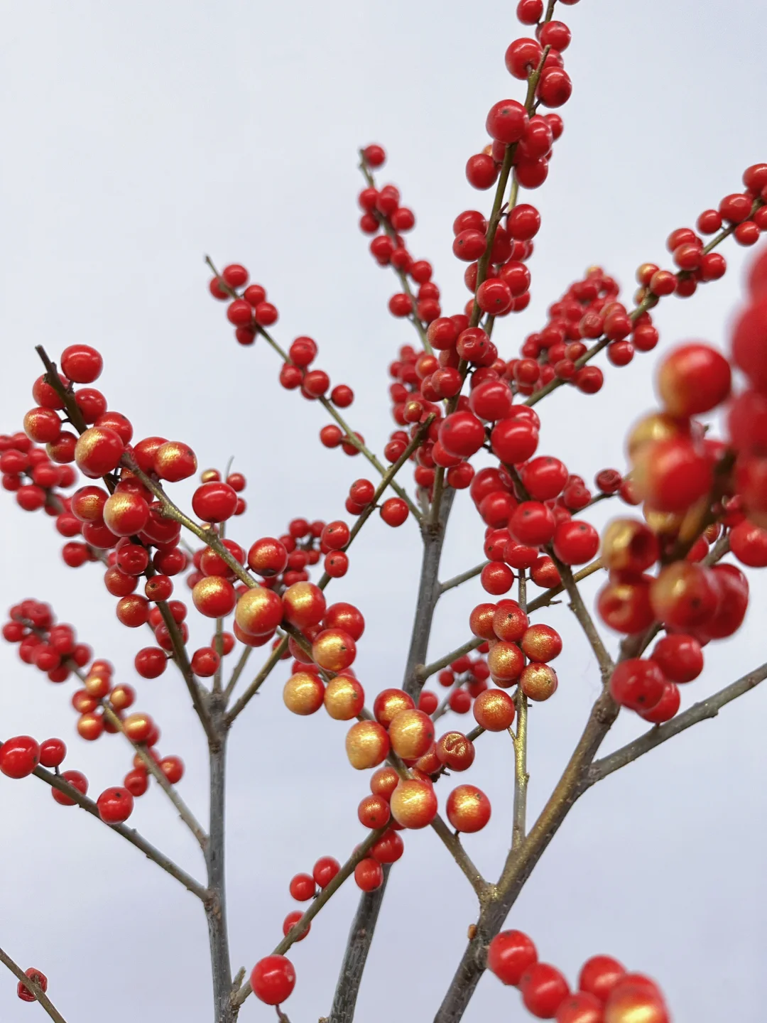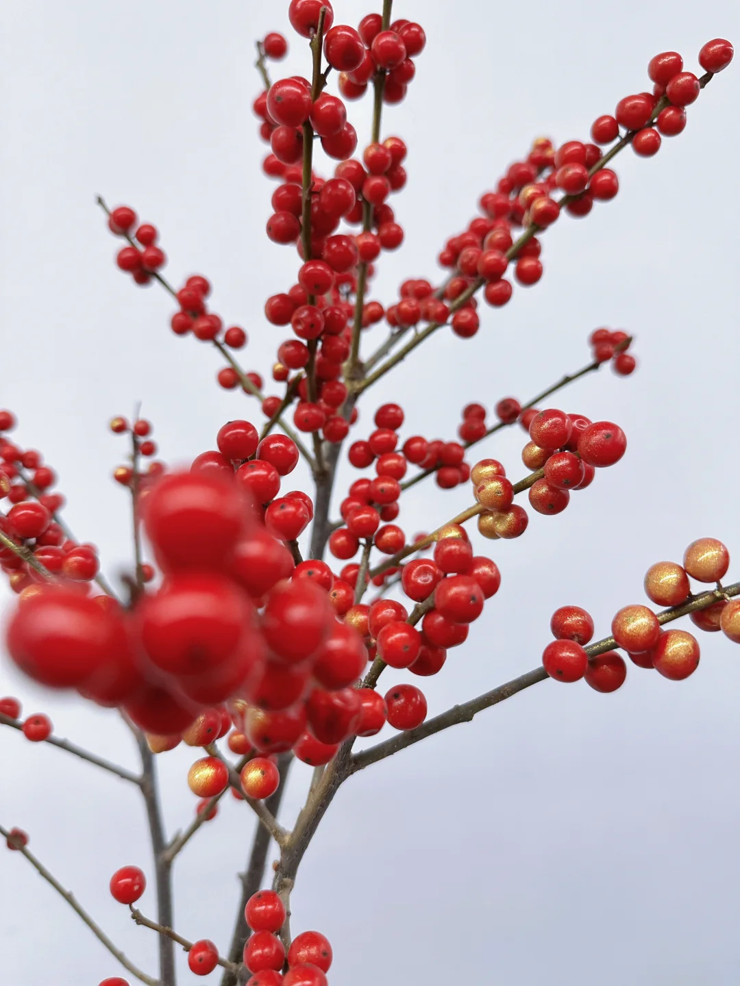 冬青可搭配自然风、现代风、国潮风等风格花束,此花材在其中能够彰显花束的华贵与大气;