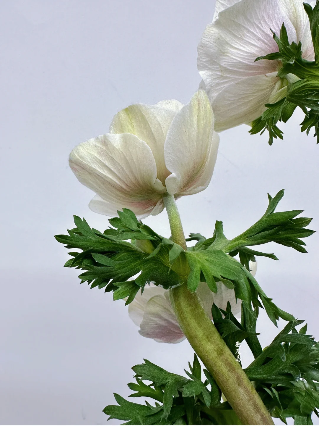 (不要让靠近花头的花杆沾水,否则银莲花很容易断头,小心养护)
