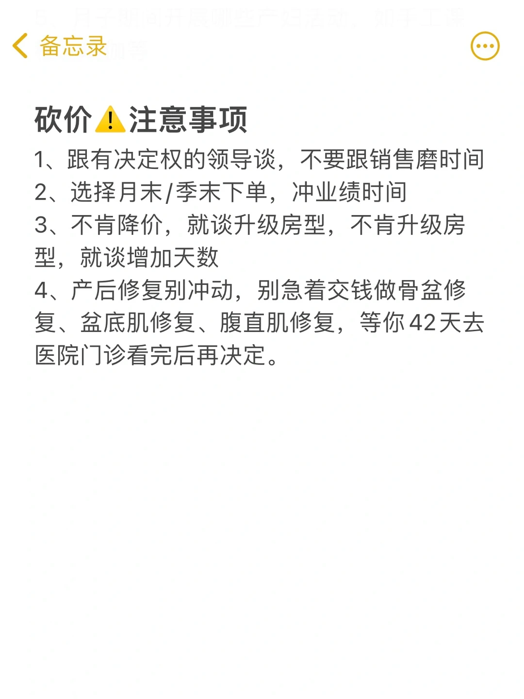 . 孕中期就要去挑选月子中心! 早一些订,有更多的挑选空间 如果孕晚期再去,空房少 还没有降价空间! . 希望这8个谈价事项 可以帮到准妈妈们 . 我会持续更新孕育干货 关注我,新手妈妈带娃不迷路