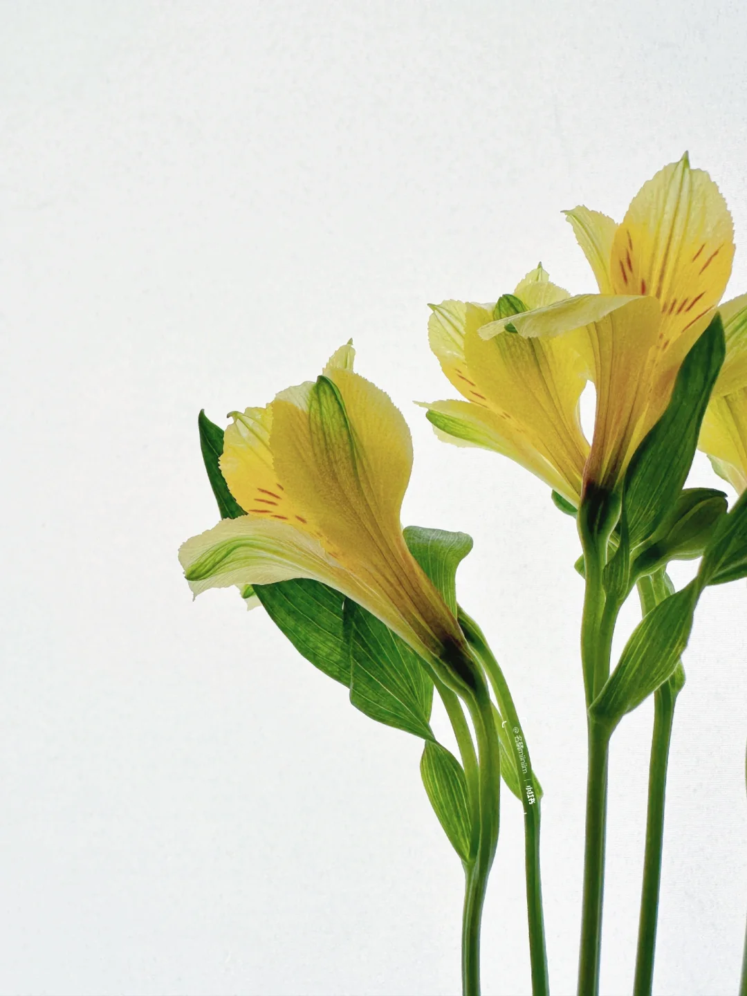六出花的花养护难度小,刚拿回来的时候是绿色花苞,后面基本上都能开放,是比较好养的花材。开放后可将花芯摘除,会更加纯粹。原产于智利,其花朵类似于杜鹃和水仙,但叶子和茎像百合花,内轮有紫色或红色条纹及斑点,一支花有多个花头。