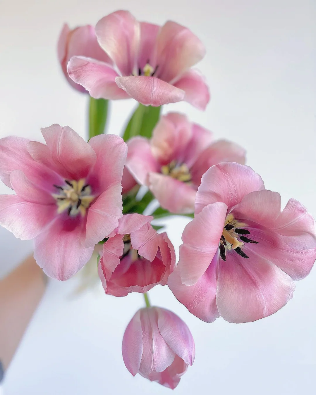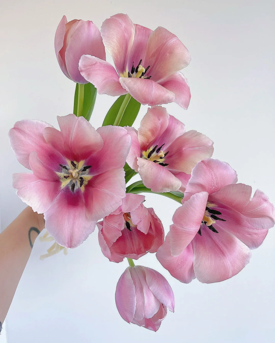 🌷🌷花材:“安娜”郁金香 🌷🌷学名:Tulipa gesneriana 🌷🌷别名:洋荷花、草麝香、郁香 🌷🌷花语:爱、慈爱、祝福、美丽 🌷🌷花期:夏季7天左右 冬季14天左右 🌷🌷特点:郁金香誉满全球,其形态优雅柔美,种类繁多,被称为世界花后,成为代表时尚和国际化的一个符号, 并且成为了多国国花。 🌷🌷搭配:郁金香可做开瓣处理,吸色处理,使其花型花色更加美观。搭配自然风、现代风、韩式风等风格花束均可;插花中作为跳跃性花材能够优化整个作品。 🌷🌷养护 1⃣️换水:夏季每1~2日一次  冬季每3~4日一次 2⃣️清洗:花瓶提前清洗干净,擦掉内外壁水渍,花杆剪根以后冲洗 3⃣️水位:花瓶高度1/3以下(水过多很容易长高导致花杆变弯) 4⃣️修剪:根部以上2~3cm处平剪(减少吸水量避免花杆生长过快) 🌈|TIPS|长按自取|感谢喜欢|欢迎分享