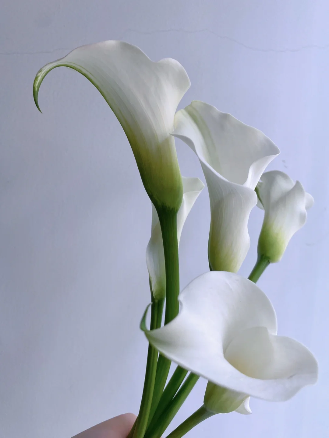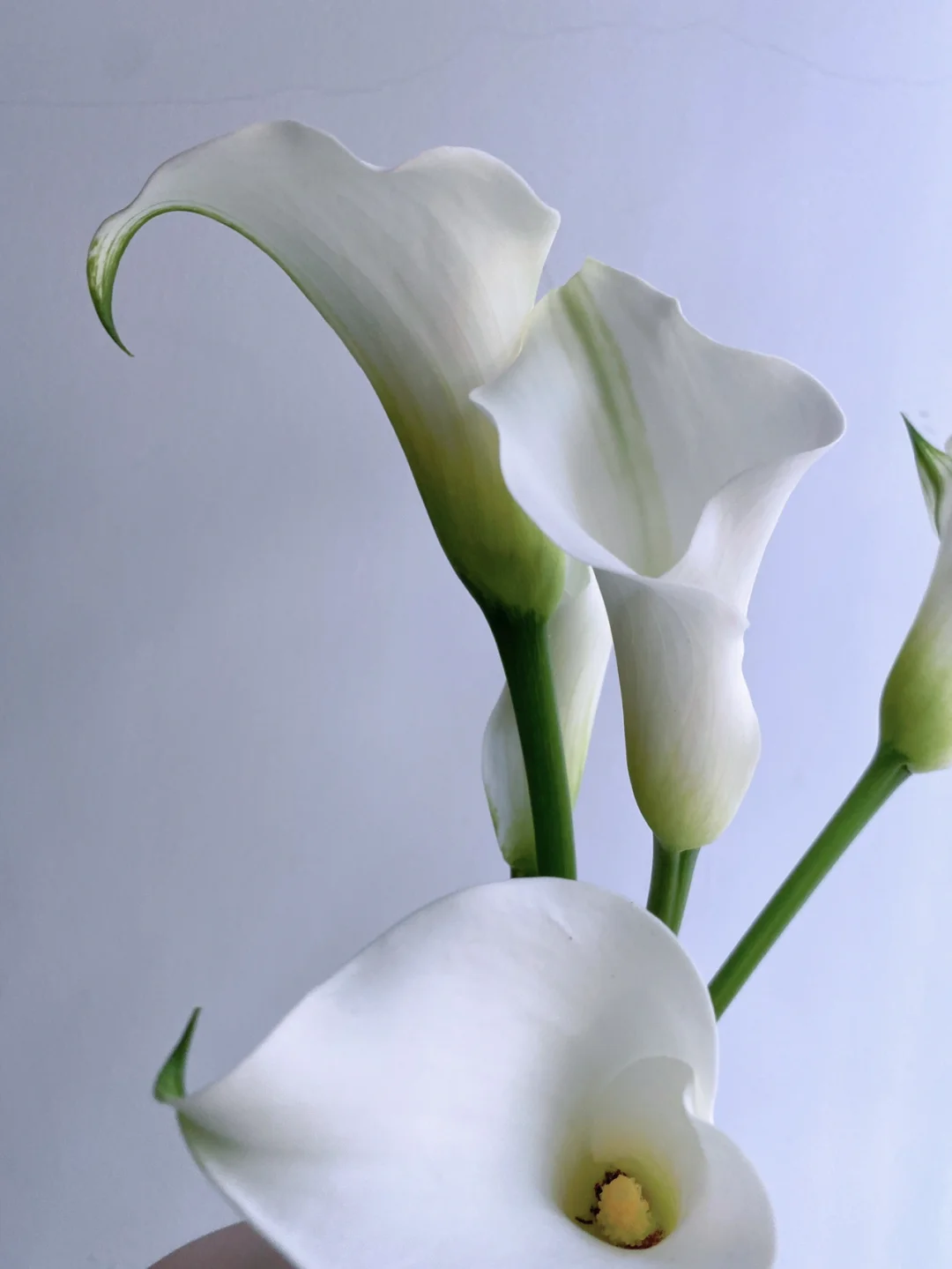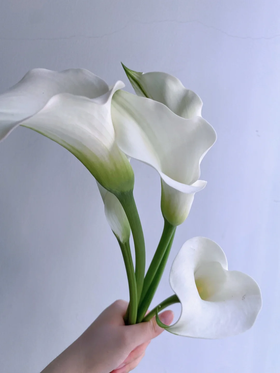 ⬜️🟩花材:白色海芋 ⬜️🟩花语:此情不渝 ⬜️🟩花期:夏季7天左右 冬季14天左右 ⬜️🟩特点:具有很优美的线条,在欧美国家是新娘手捧中的常用花材。 ⬜️🟩搭配: 海芋作为异型花材,适合用作焦点花材,能够增加花艺作品的美感。 搭配自然风、现代风、韩式风等风格花束均可,在做新娘手捧时更是恰到好处。 ⬜️🟩养护 1⃣️换水:夏季每1~2日一次  冬季每3~4日一次 2⃣️清洗:花瓶清洗干净,擦掉水渍,花杆剪根冲洗 3⃣️水位:花瓶高度1/3以下 4⃣️修剪:根部以上2~3cm处平剪根(此花材易烂根,平剪耐养哦) 🌈|TIPS|长按自取|感谢喜欢|欢迎分享