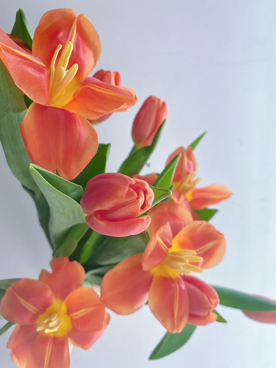 此款郁金香名叫“西柚”,颜色是橙红色,非常鲜亮的颜色。