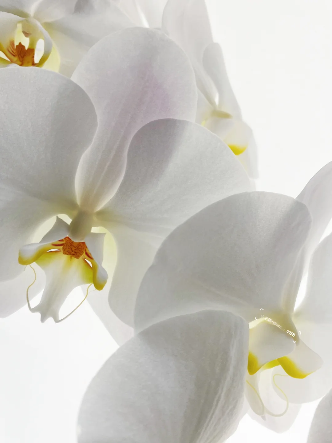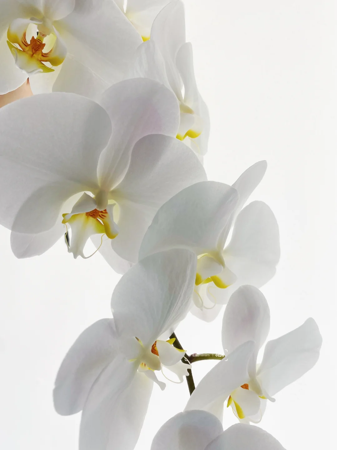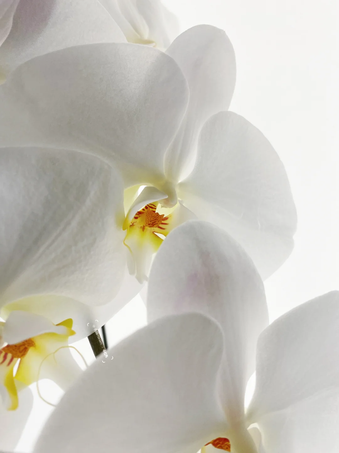 白色大花蝴蝶兰是鲜切花中最常用的品种,自带贵气,但花瓣易受伤,注意轻拿轻放。