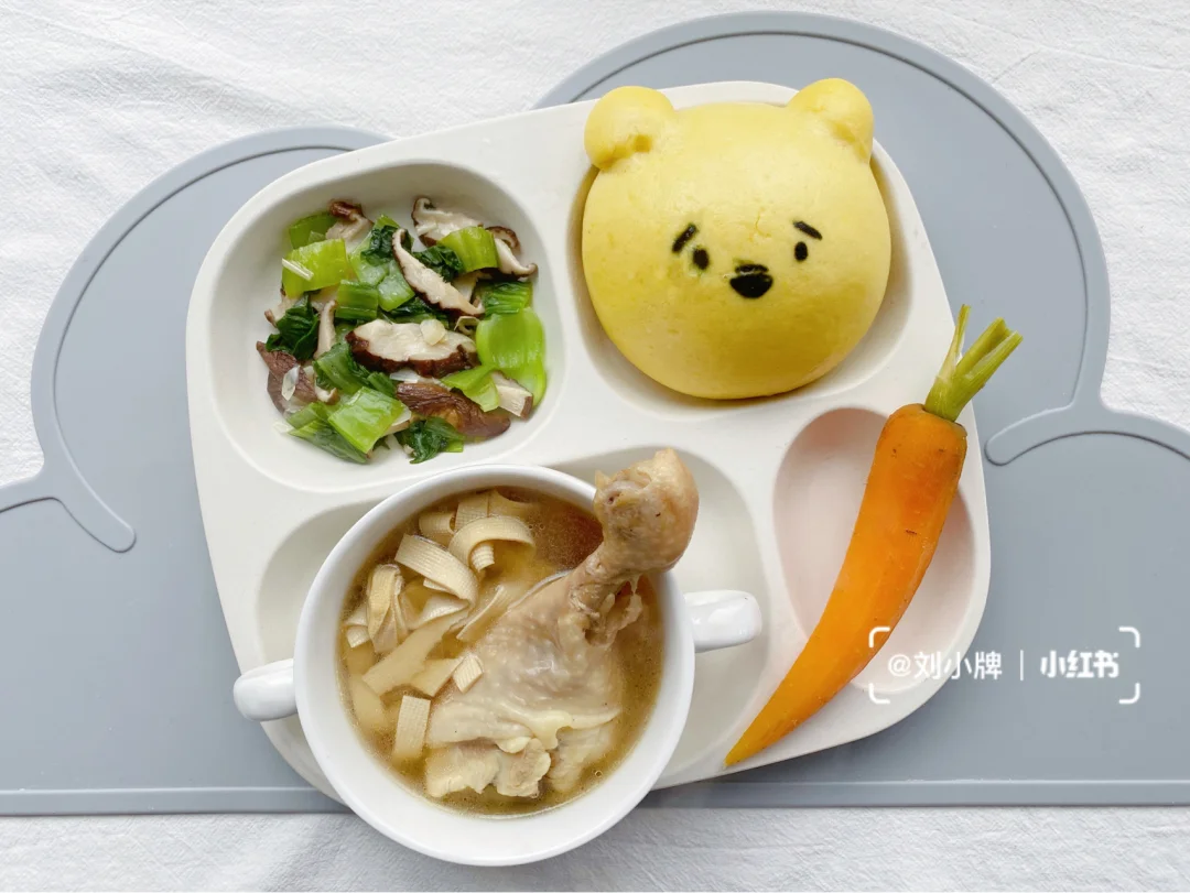 🔹香菇油菜➕鸡汤豆腐丝➕小熊南瓜馒头🔹