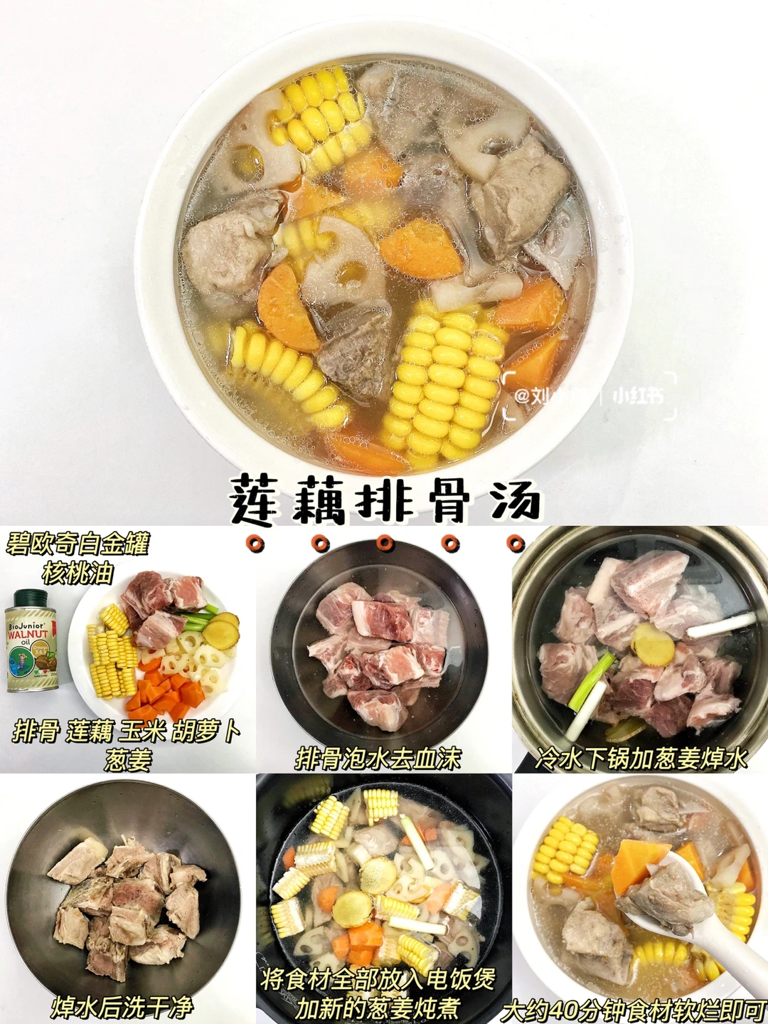 排骨、莲藕、玉米、胡萝卜、葱姜