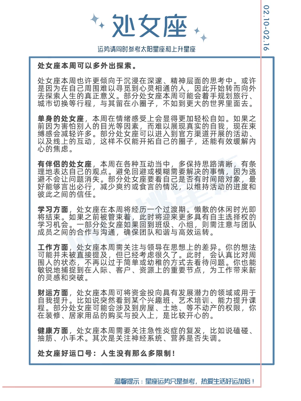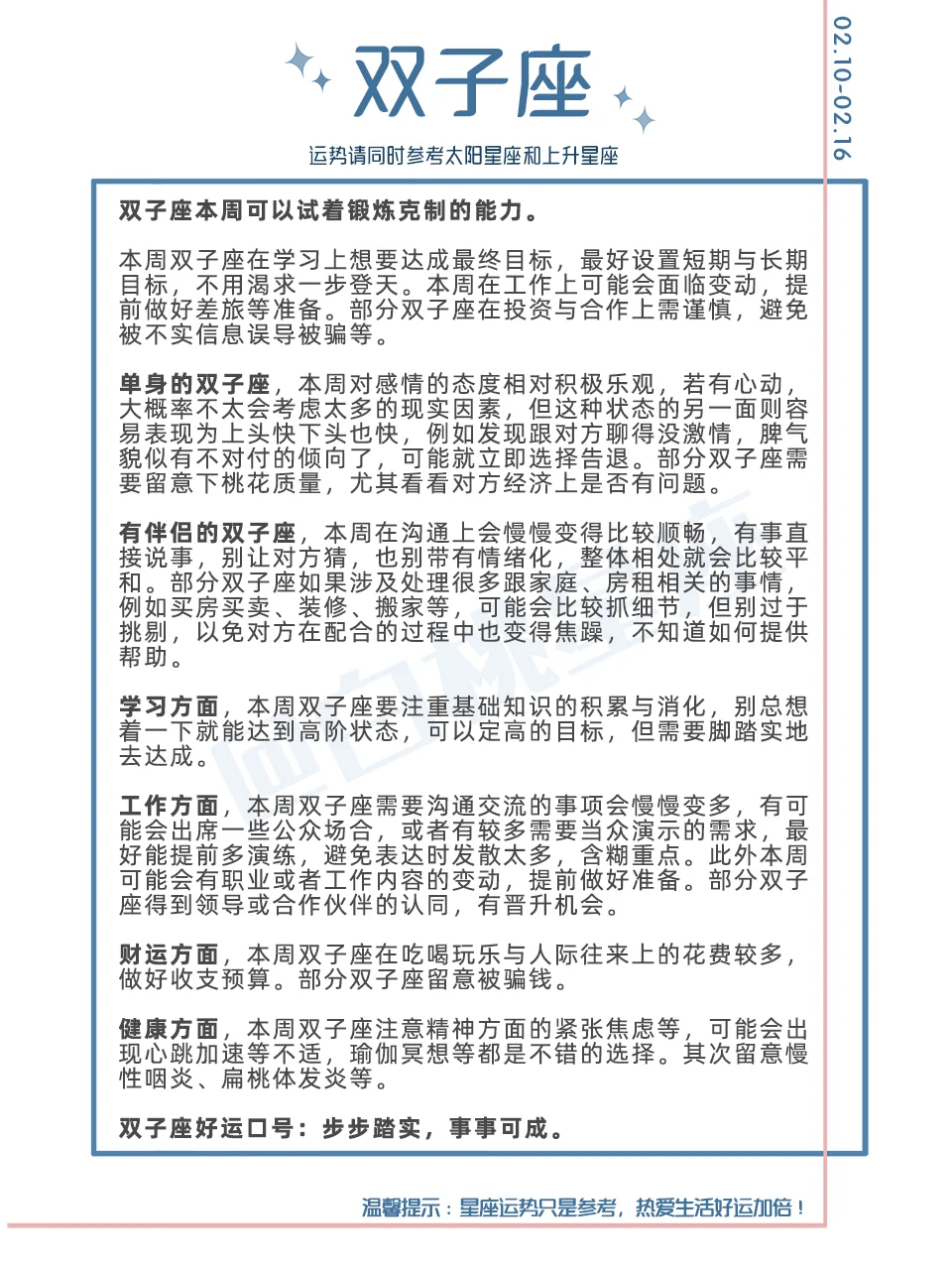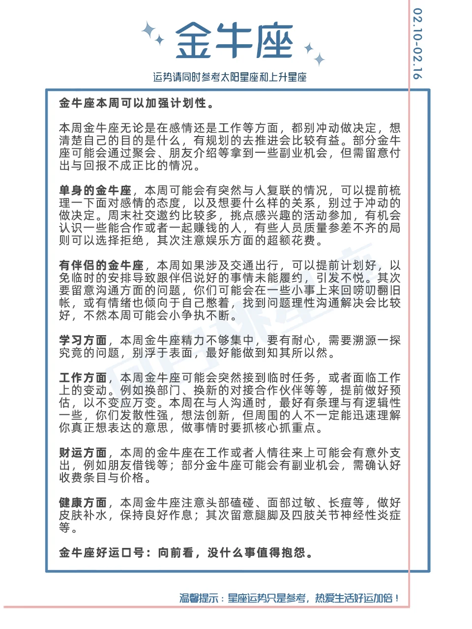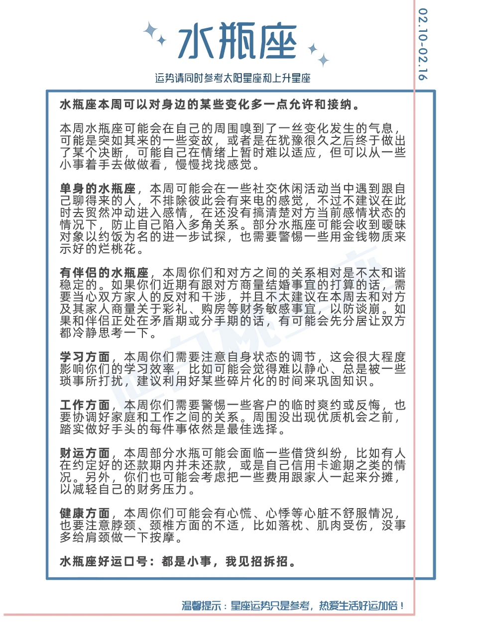 快带上你的好运口号领取本周好运吧~ 温馨提示:星座运势只是参考,热爱生活好运加倍! 星座 星座运势 十二星座