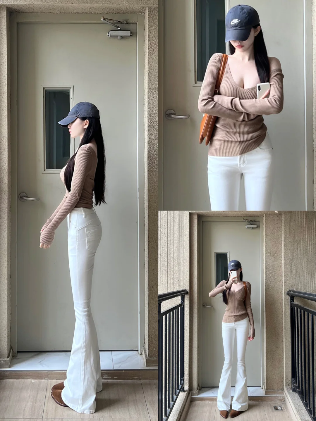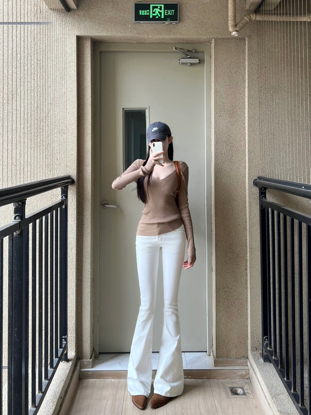 显身材穿搭 白裤子 温柔穿搭 美女感 秋冬内搭