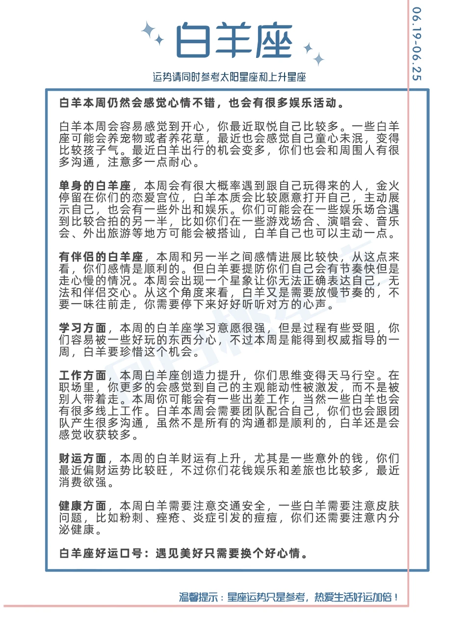『白桃星座周运』2023.6.19—6.25
