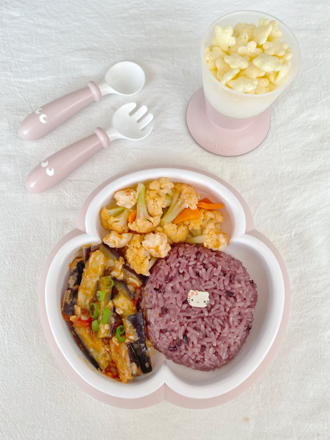 🍆鱼香茄子+菜花炒虾仁+杂粮米饭
