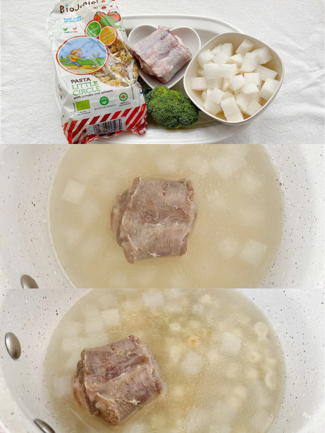 1.牛尾焯水后加葱姜和水炖煮2个小时。煮到1.5小时放入白萝卜。