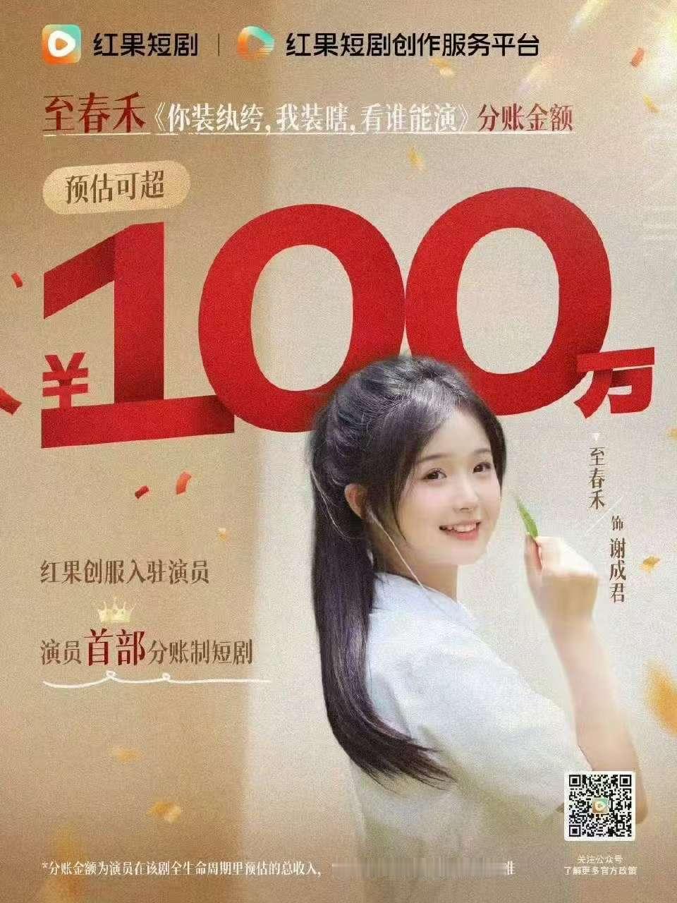 可别说短剧演员挣不到钱了,现在播的好的短剧,演员光奖金就能拿到100万