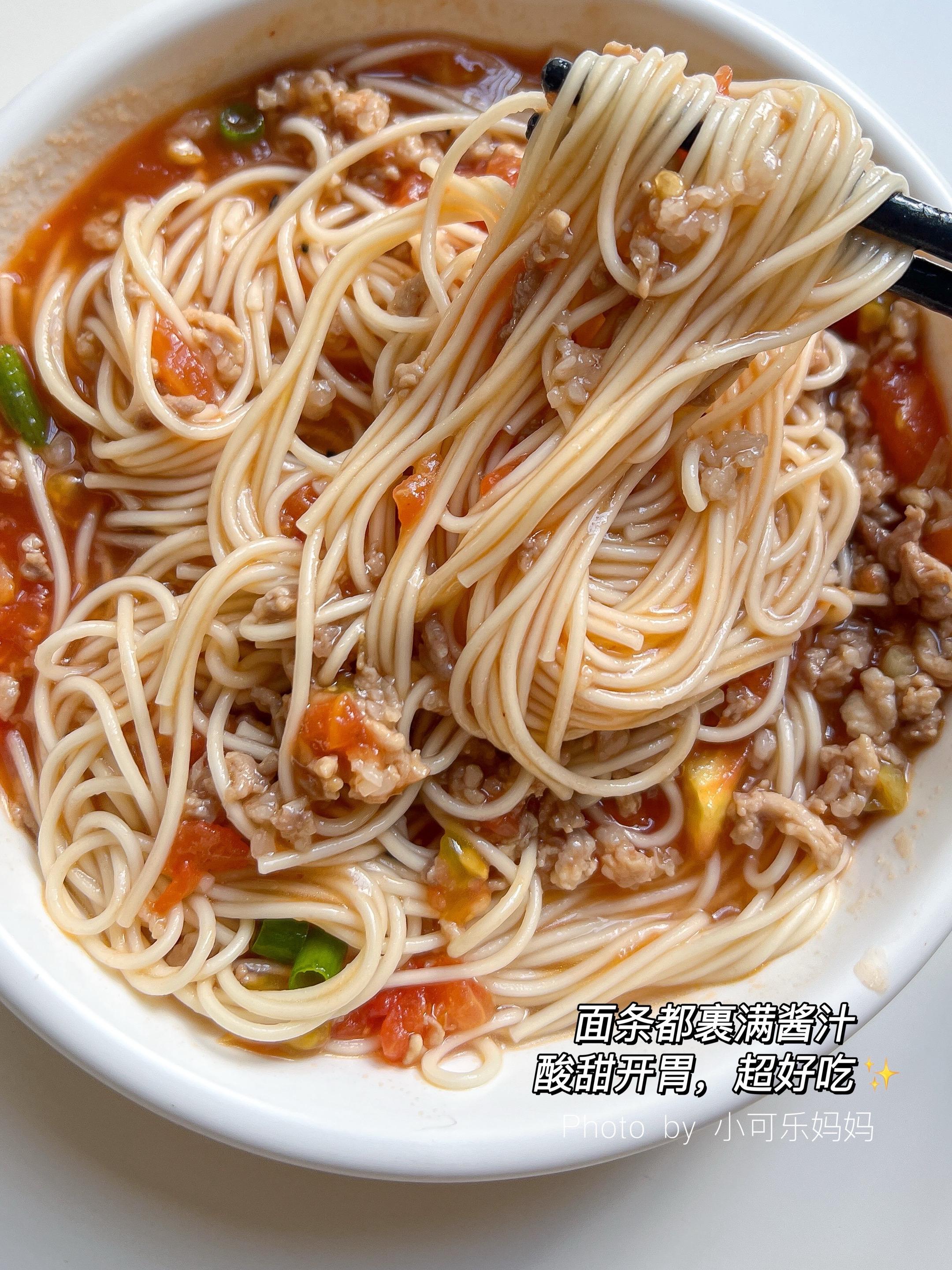 12m+番茄肉酱面🍅酸甜开胃 超好吃。今天做的这个番茄肉酱面,真的太...
