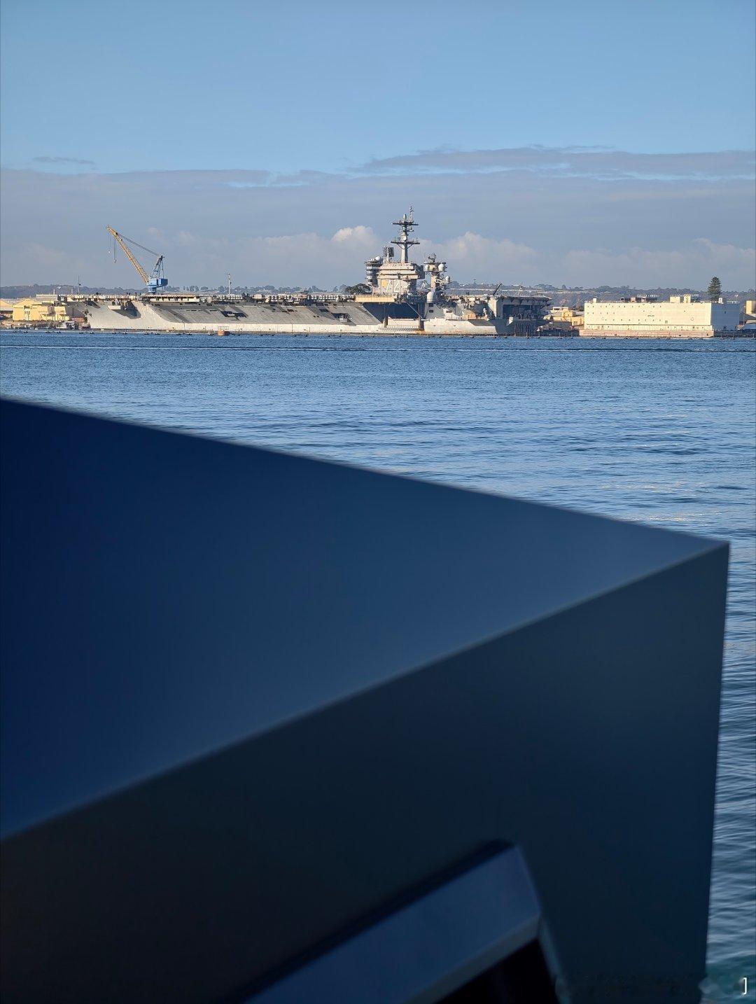 给媒体老师们推荐一个绝佳的拍车地点,海边的停车场,很空旷很出片,有机会拍到跟三艘小船同框的画面这三艘小船分别是破旧的中途岛号、正在服役的核动力尼米兹级林肯号和一艘未知的疑似航母,拍出一种貌似在航母甲板的感觉也欢迎甲方爸爸提供车辆(chongzhi),下次一定带专业设备来好好拍,马一龙的皮卡只能用手机随便拍拍了