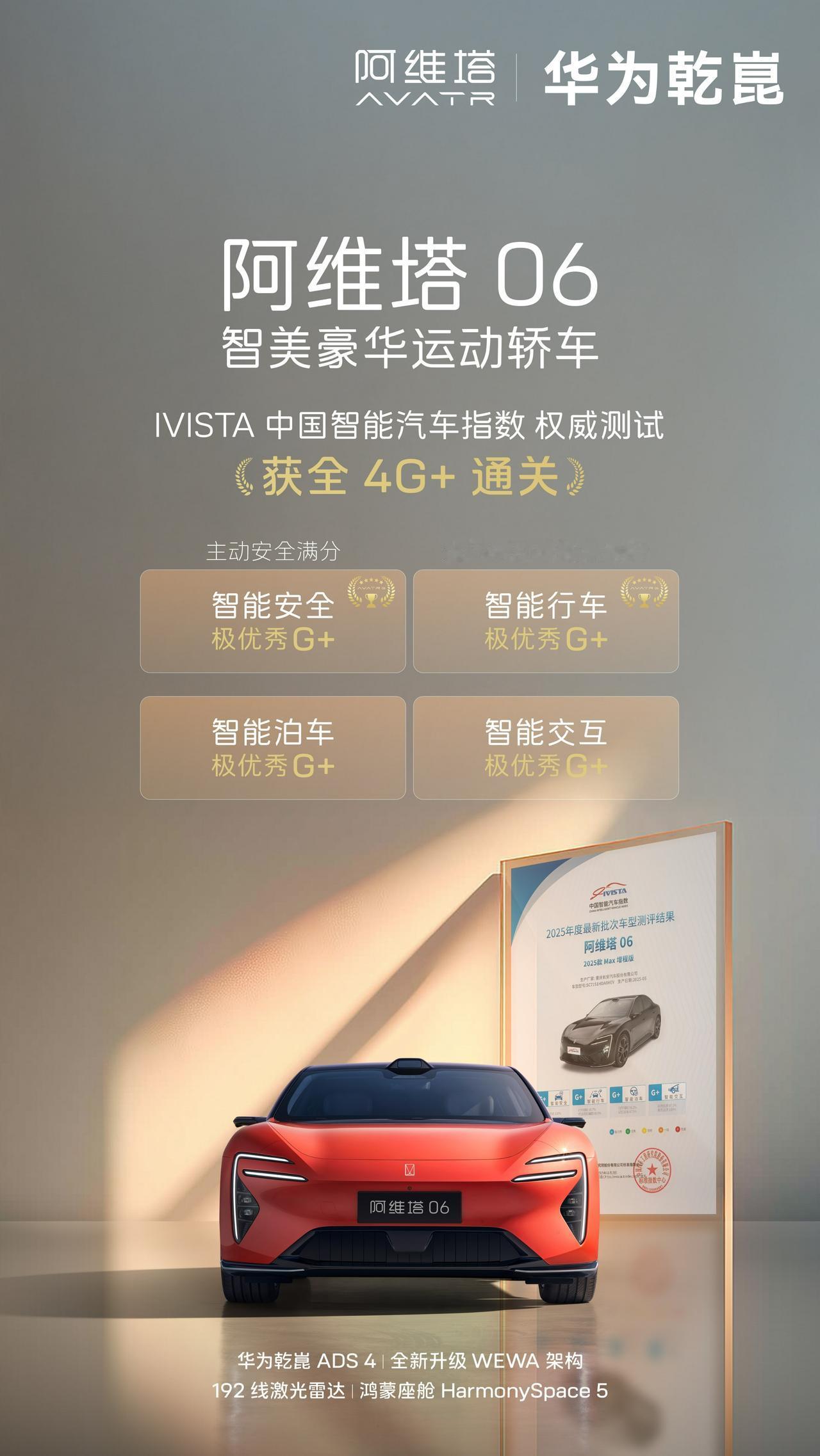 阿维塔06,是阿维塔品牌中最漂亮的一款车,大家没意见吧! 明明可以靠颜值的,偏偏它还非常优秀。这不,又拿了两项荣誉。 IVISTA 中国智能汽车指数 ,权威测试《.获全 4G+ 通关》,包含智能安全,智能行车,智能泊车,智能交互。 荣膺 C-AHI 中国智能汽车健康指数,测试结果全五星通过。在清新空气,健康防护,绿色出行三大方面,全五星。 有颜值,有智能,还健康。从内到外的优秀。