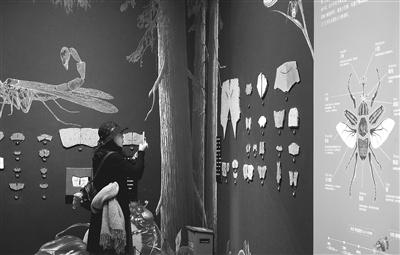 上图观众观看展览上的珍贵古生物展品。下图观众观看昆虫及节肢动物化石。本报记者洪星摄