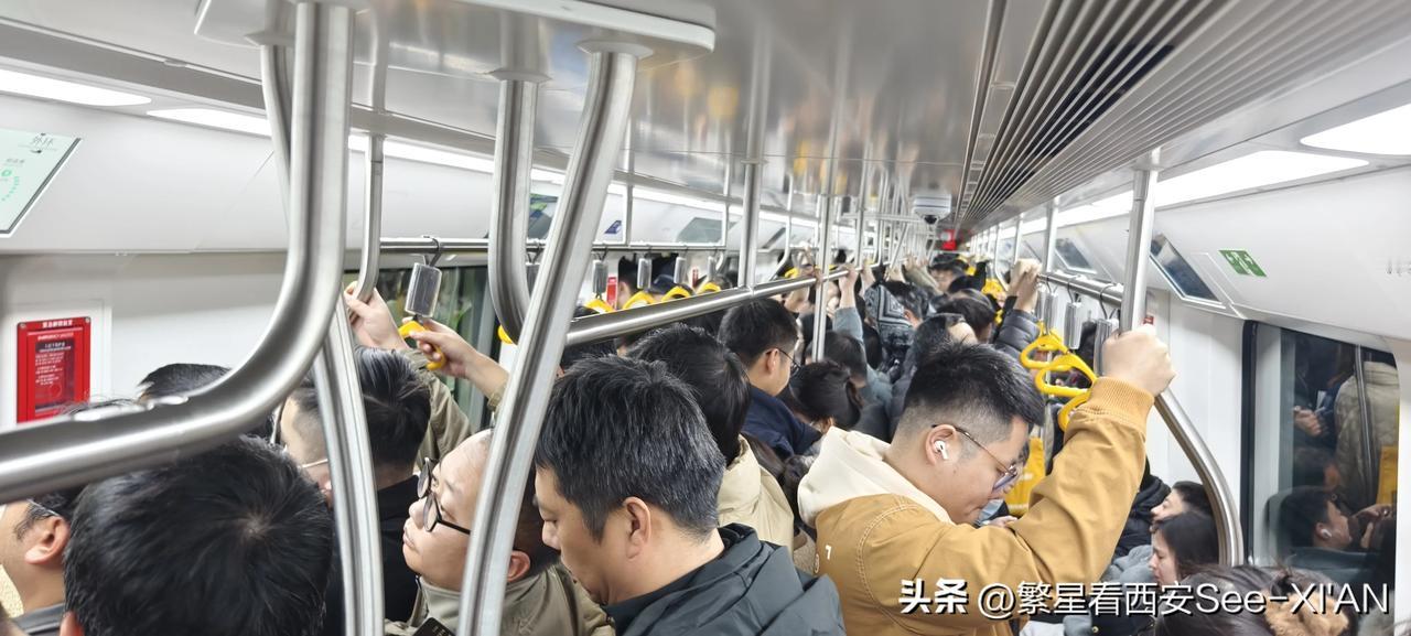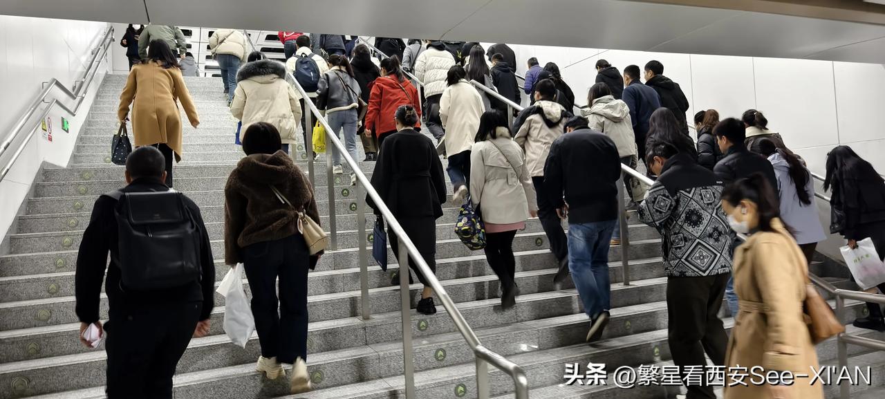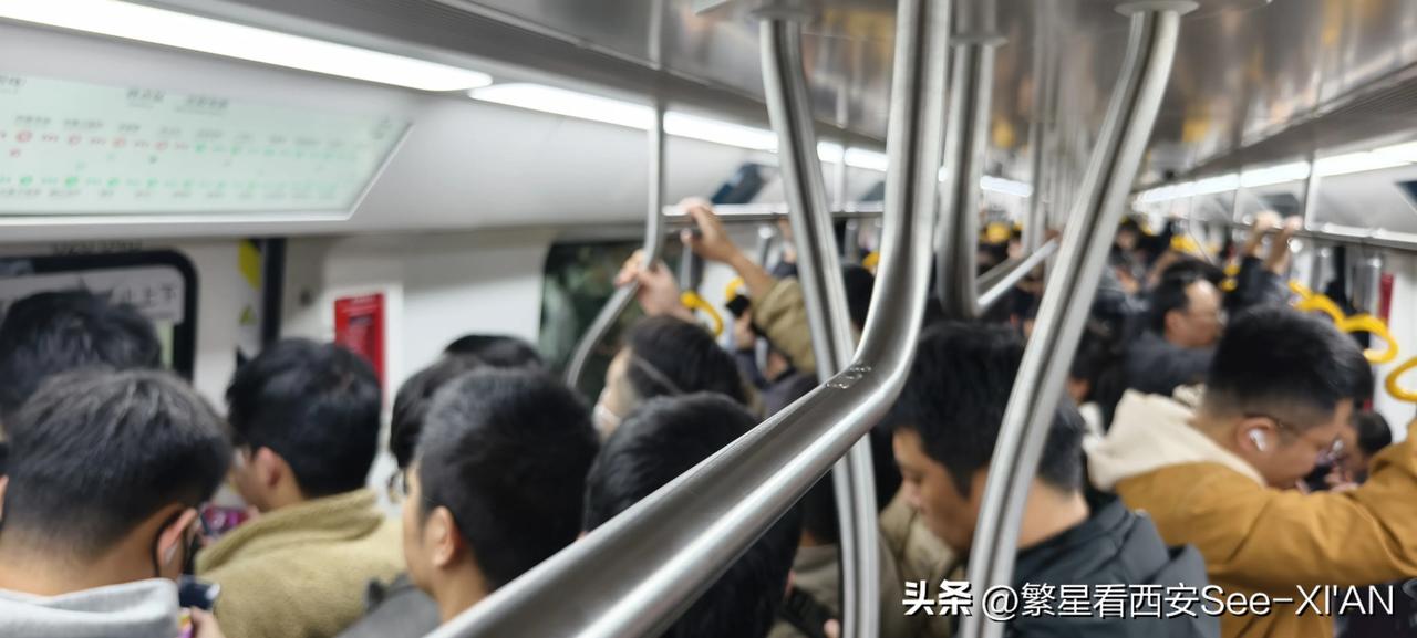 我的今日状态:😁轻松愉快 我这里的天气:☀️晴天 早上8点,乘坐地铁5号线,到达金光门这一站,车门一开大量人鱼贯而出,急匆匆奔向换乘通道,这里是换乘地铁8号线的地方。站在这里看,往来的人群络绎不绝。有从5号线换乘到8号线的,也有8号线换乘到5号线的。早高峰,在西安很多地铁站呈现出的都是这样的场景。很多地铁站人潮汹涌,很多条线路车厢内接踵摩肩。