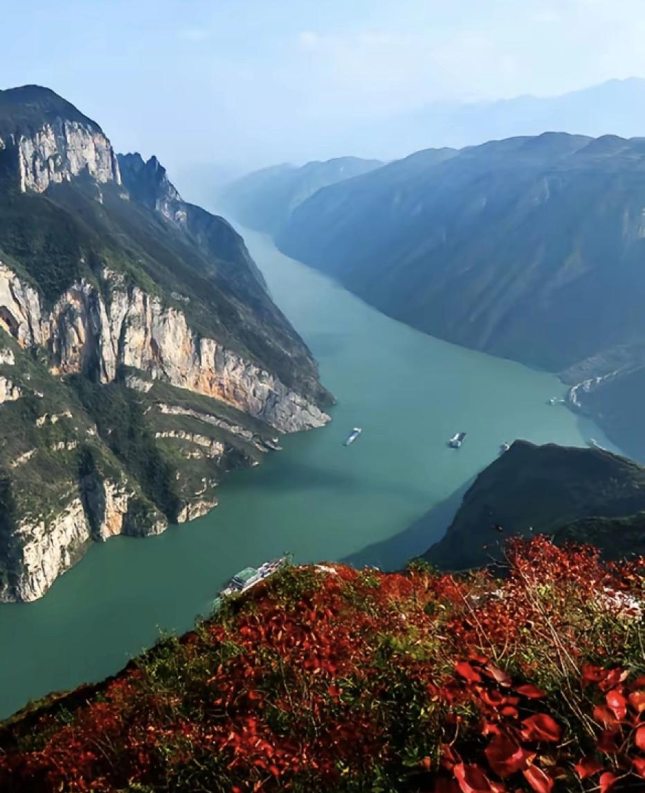 秋天一定去一次三峡吧,景色层次拉满,瞿塘峡的雄、巫峡的秀、西陵峡的险,搭配红叶、