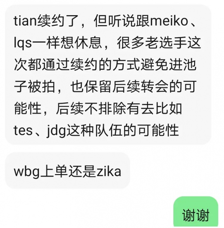 豆瓣网友爆料:WBG.elk已确定 上单还是zika Tian续约但会休息