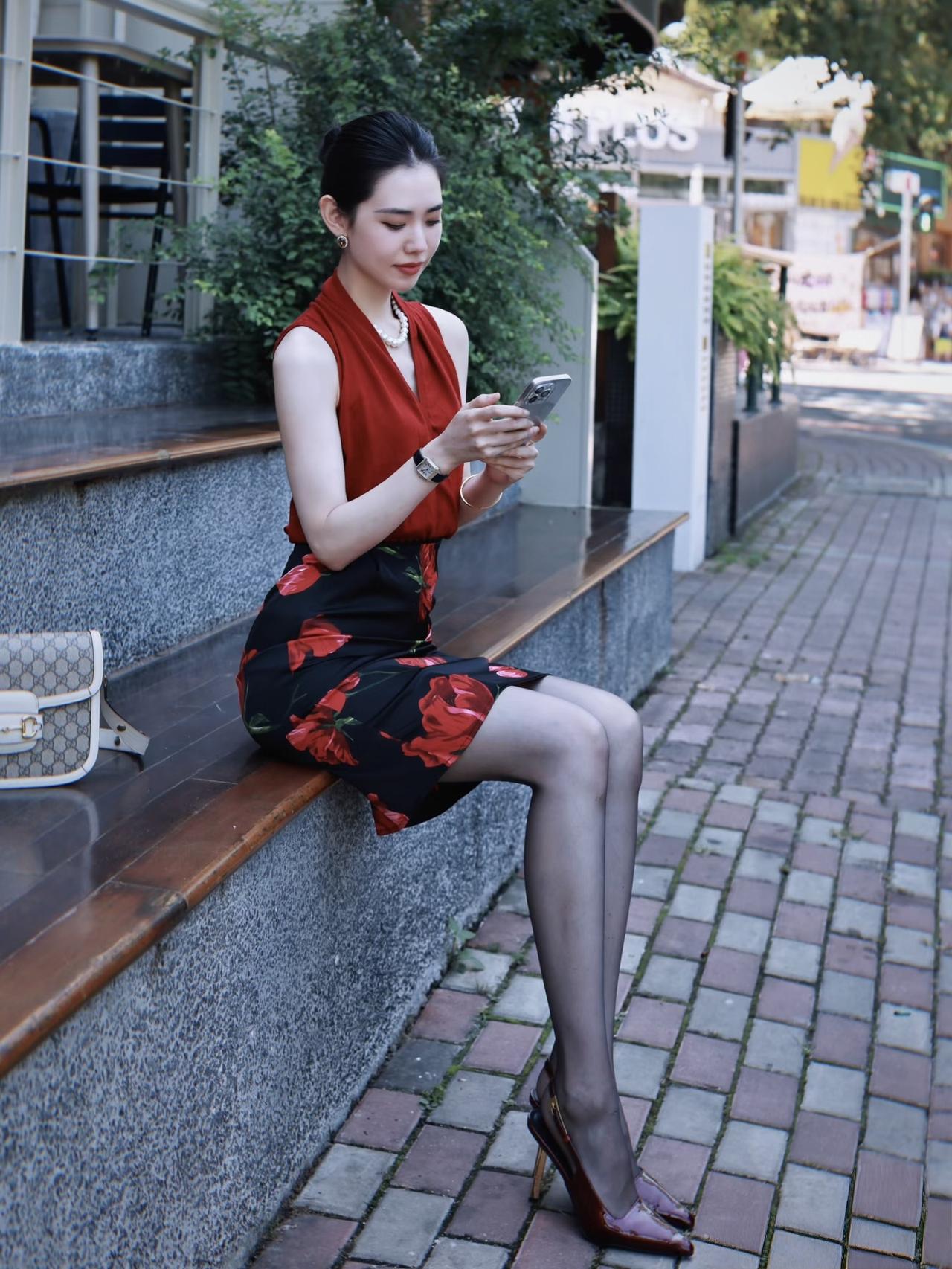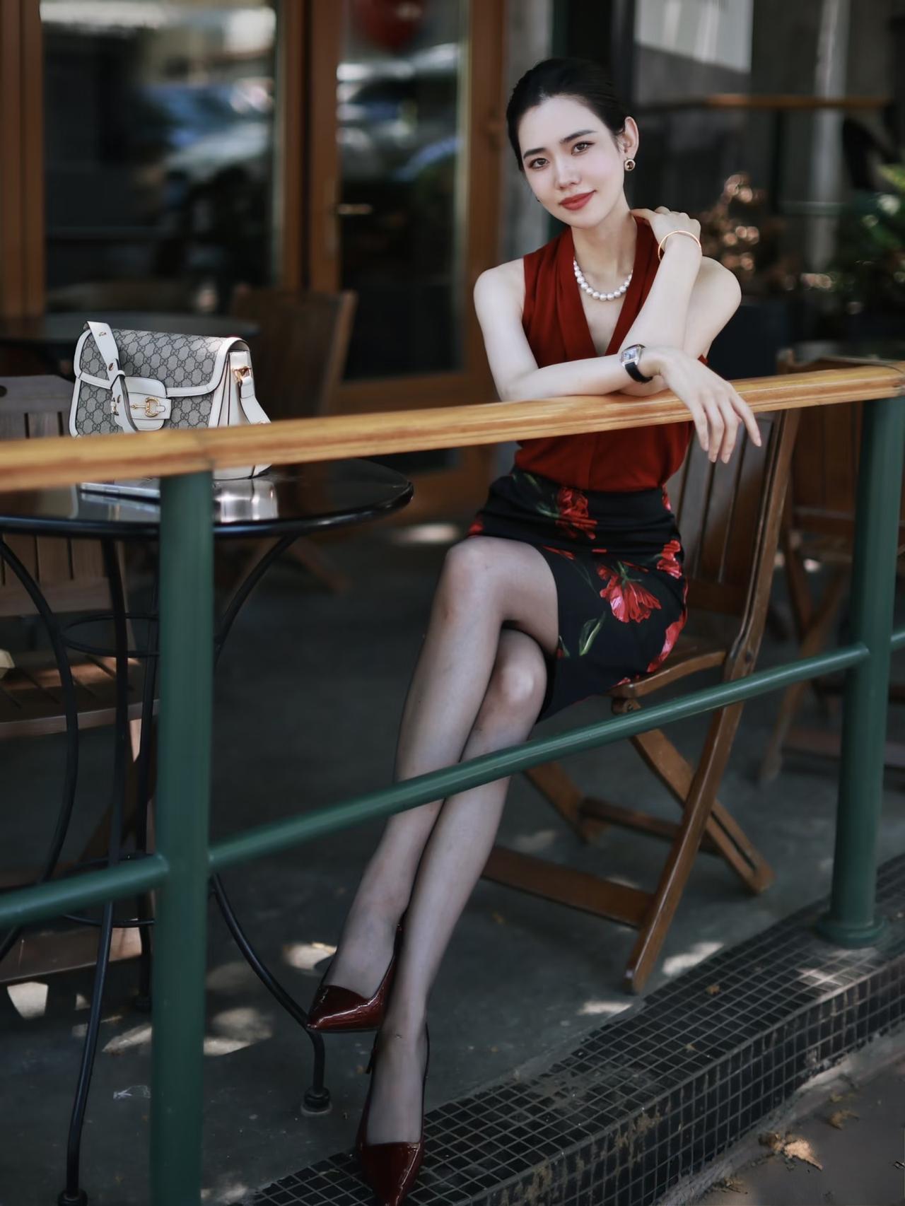 极品模特红裙黑丝写真性感黑丝美女黑丝长袖连衣裙红裙女郎黑丝高跟御姐黑裙