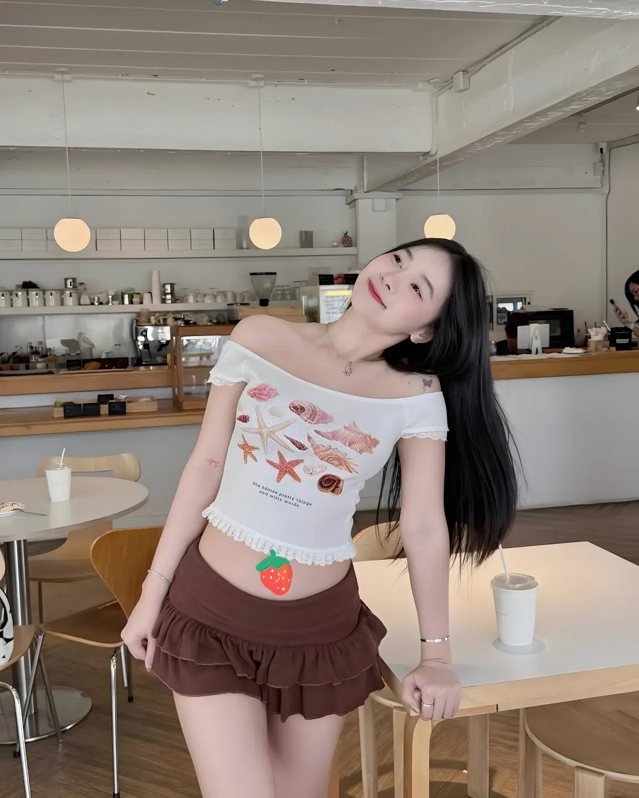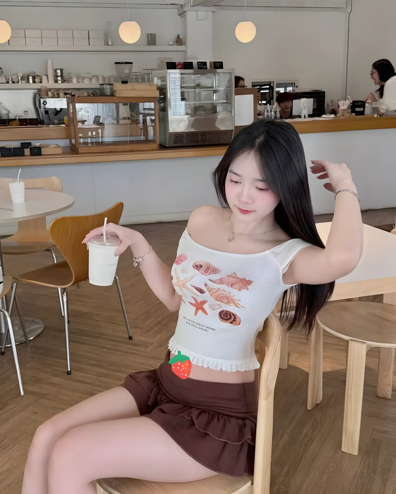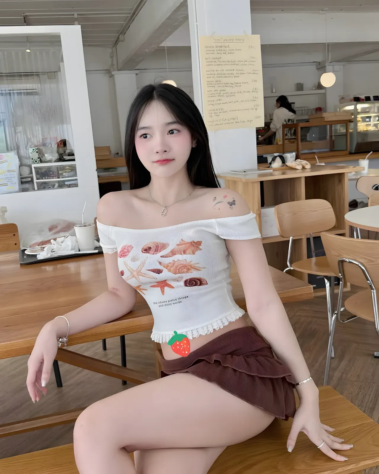 如何穿搭会具有少女软妹感甜美可人的青春秀丽美女,来和朋友们分享一下。这位美女有着乌黑顺滑的长发,五官精致,眉眼灵动,脸上透着青春甜美的气息。她身穿白色露肩上衣,搭配棕色短裙,露出纤细腰肢和修长美腿,时尚又俏皮。她的姿态随性自然,将青春活力与时尚感融合,仿佛带着阳光般的朝气,让人感受到独属于青春美女的迷人气息晒一下生活的美照