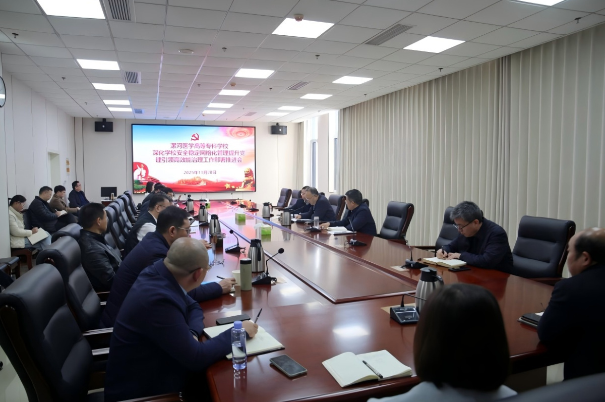 11月20日上午,漯河医专在召陵校区召开“深化学校安全稳定网格化管理提升党建引领高效能治理”工作部署推进会。党委副书记边晓峰,相关职能部门负责人、各学院党总支负责人出席会议。