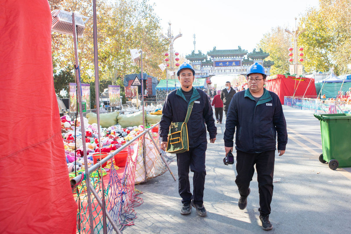 11月21日,卫辉市十月物资交流大会开锣次日,国网卫辉市供电公司卫北中心供电所顿坊店服务站2名员工在大会现场开展驻点保电,全力保障这场“助农惠民+文旅融合”盛会用电无忧。