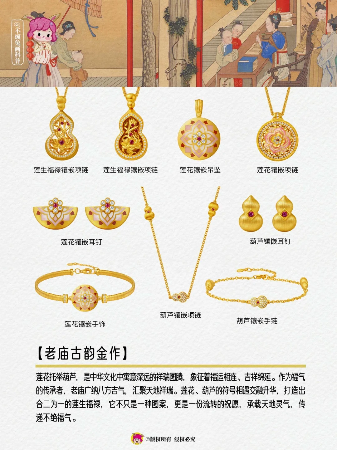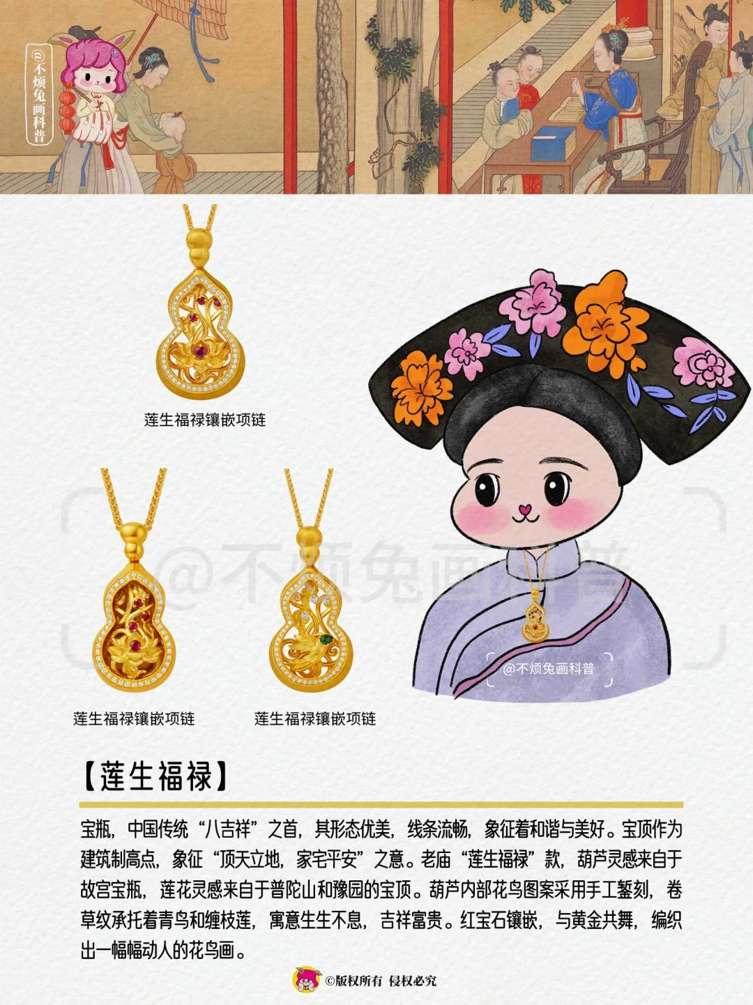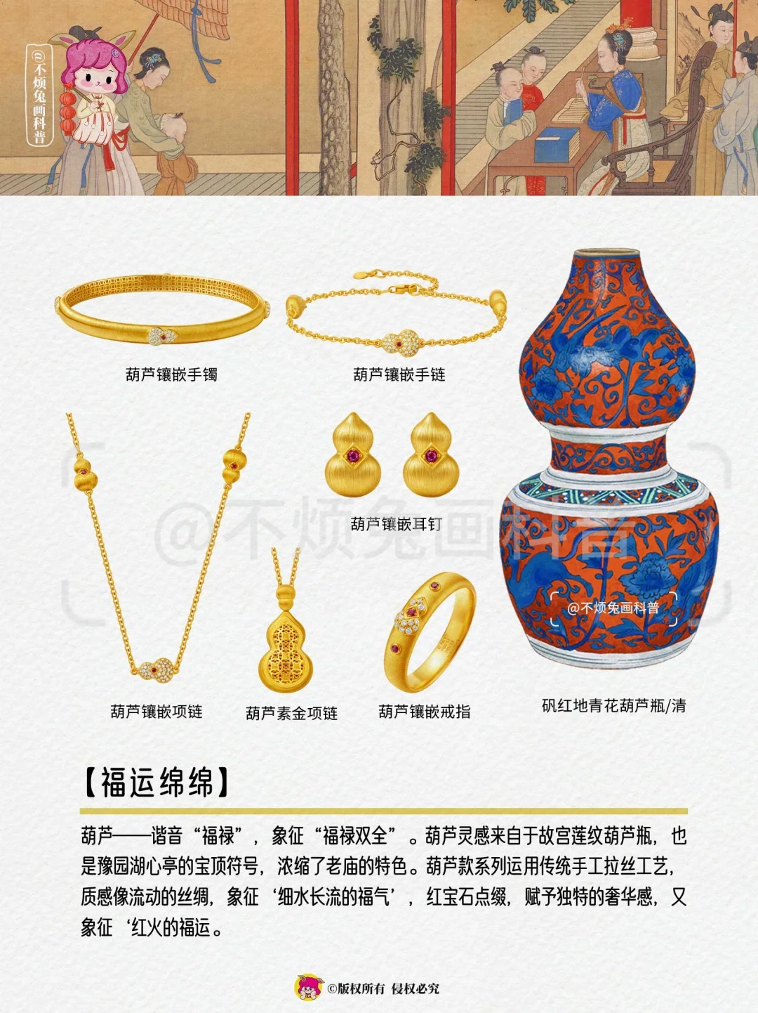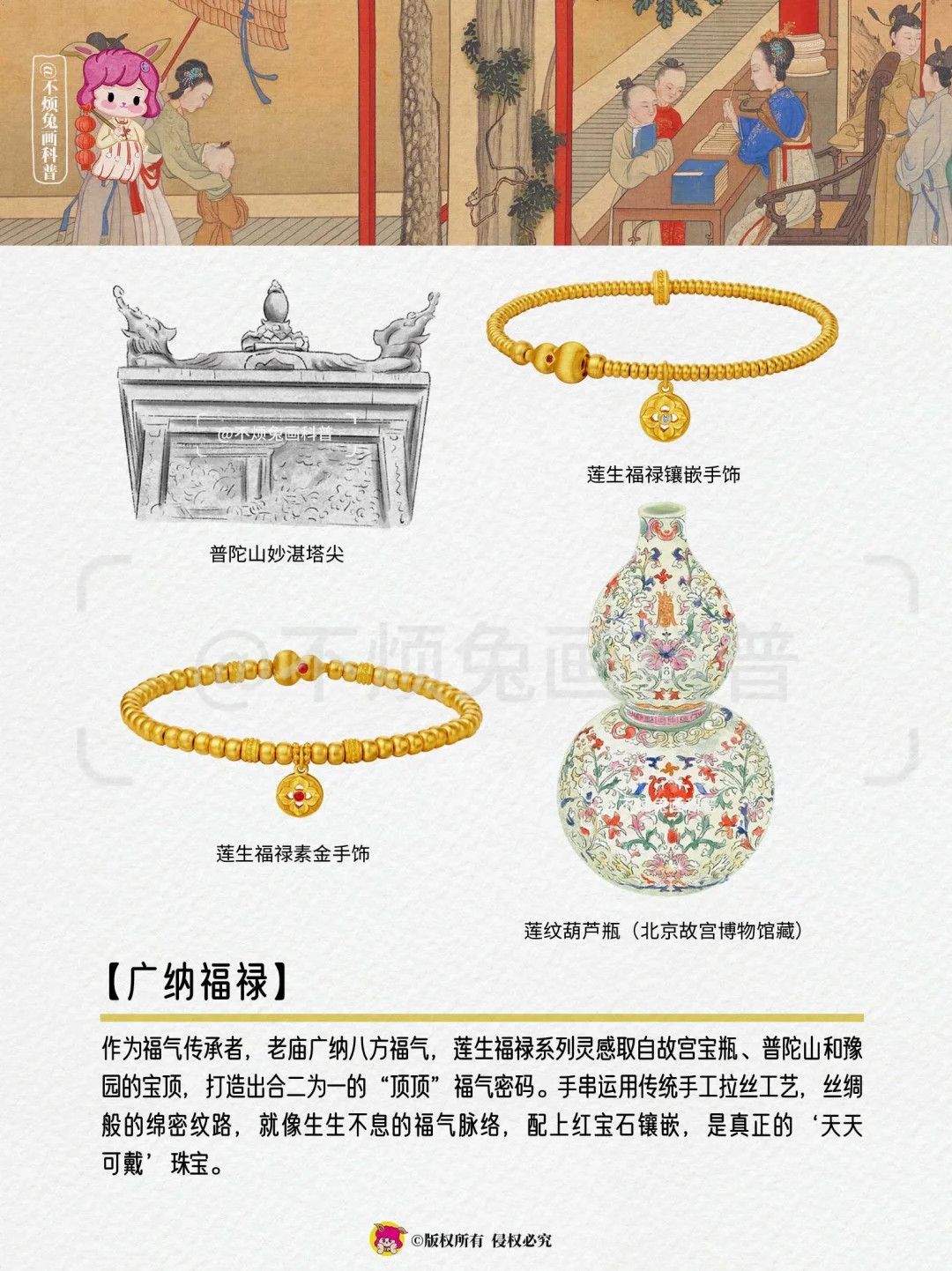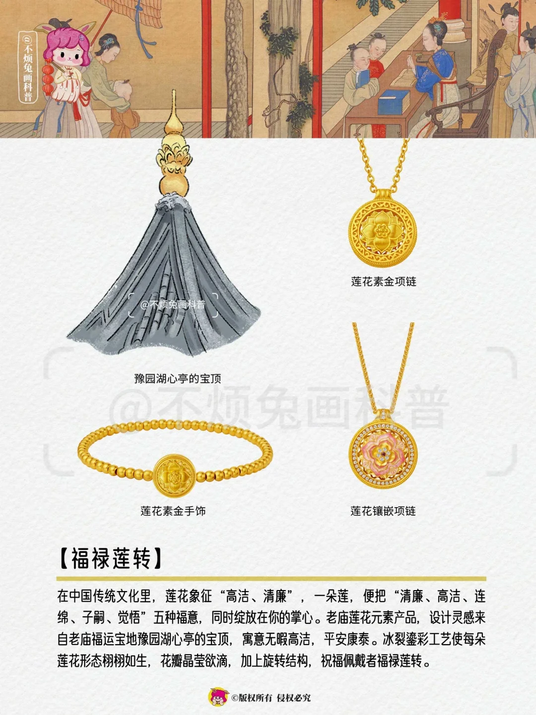 🔴 中国老祖宗是追寻福运的玩家,他们把千年智慧炼成一句暗号——「莲生福禄」。莲开见福,葫芦纳禄的组合,生来就是自带“顶流”光环。今天老庙品牌将故宫莲纹葫芦瓶、普陀山妙湛塔尖、豫园湖心亭宝顶同时结合,让莲花与葫芦的符号相遇交融并升华,化作一枚“顶顶”福气符号:莲生福禄。 - 老庙 老庙黄金 老庙古韵金作 黄金首饰 不烦兔 不烦兔家族 不烦兔画科普