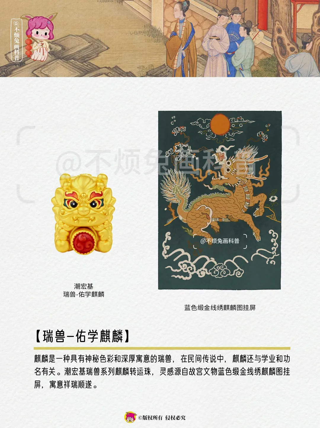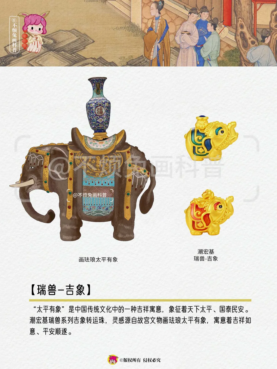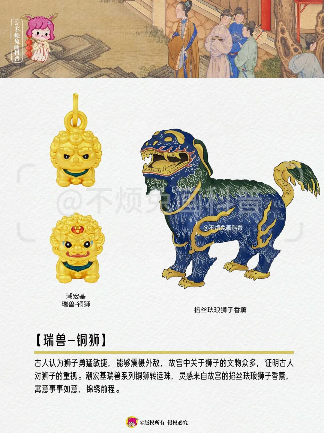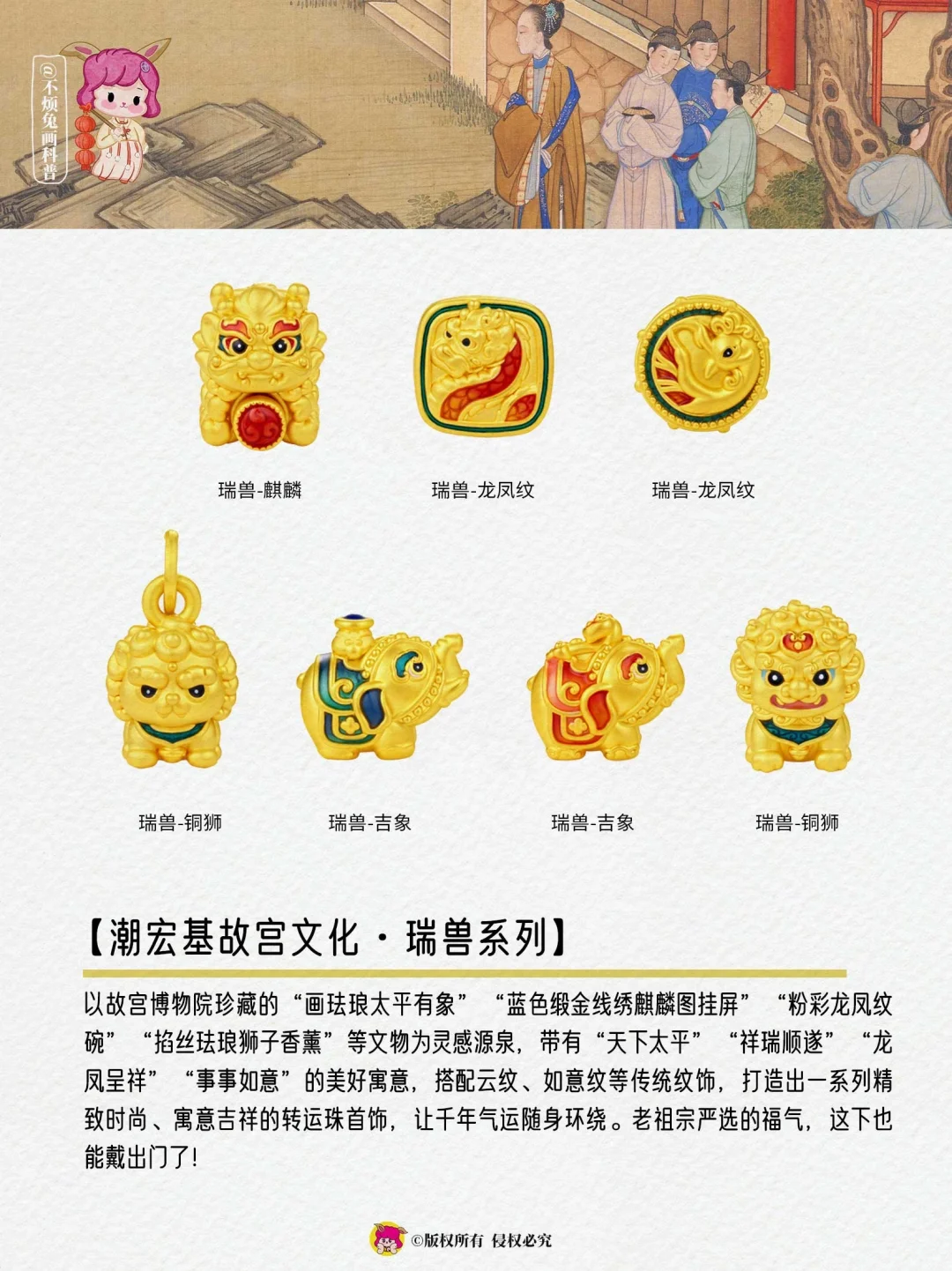 🔶老祖宗守护者,全藏在故宫瑞兽里啦!原来古代人就超爱吉祥物!故宫的瑞兽们,宛如沉默的守护者,每一尊都承载着千年福气。潮宏基故宫文化·瑞兽系列,巧妙地从故宫文物中提取象、麒麟、龙、凤、狮子等瑞兽元素,并融入云纹、如意纹等传统纹样,将中国传统的祥瑞文化与现代时尚佩戴需求巧妙融合,让我们日常生活中也能把好运随身携带。