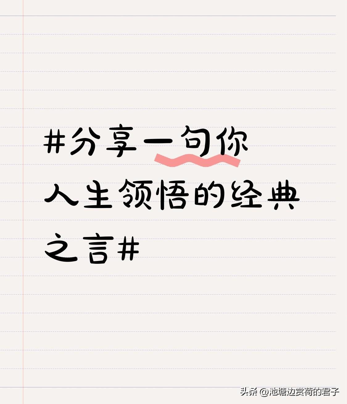 我人生领悟的经典之言是:“烦恼不过夜,健忘才幸福”。生活里烦心事一箩筐,若都记在心里,日子只会越过越沉重。走了的爱情,不会因伤心回来,真心得留给值得的人。其实,这世上总有人偷偷爱着你、关注着你。不必把烦恼一直挂心头,要相信一切都会过去。就像那些伤痛,时间自会将其治愈。健忘一点,把心放宽,幸福或许就在不经意间降临啦。