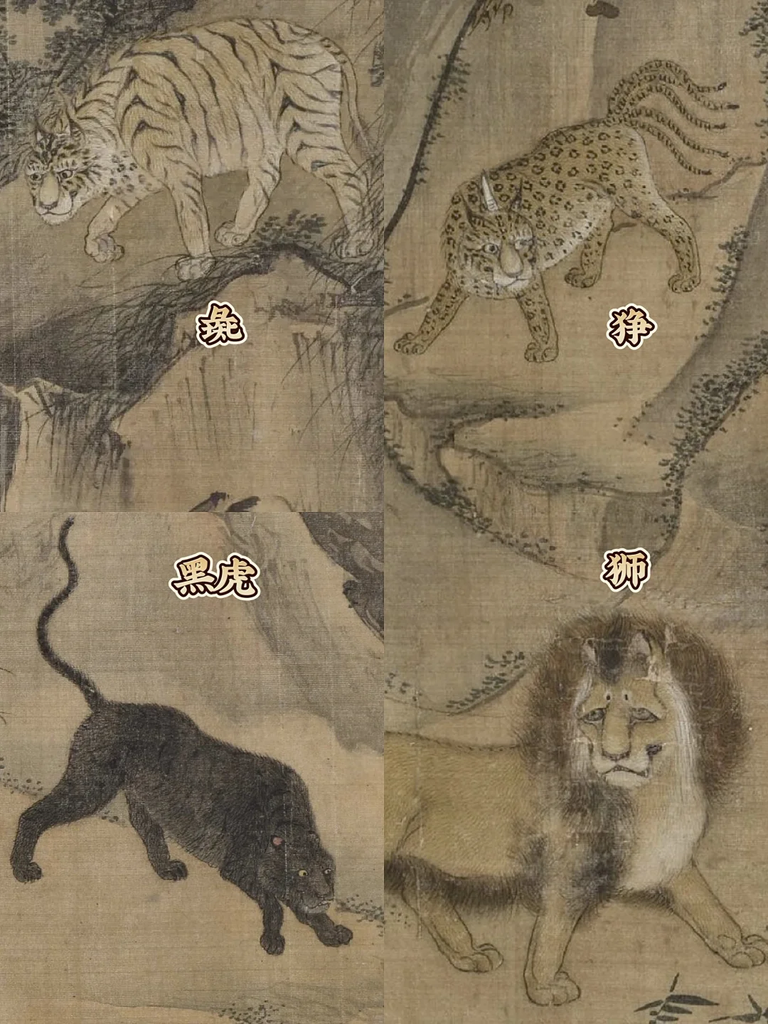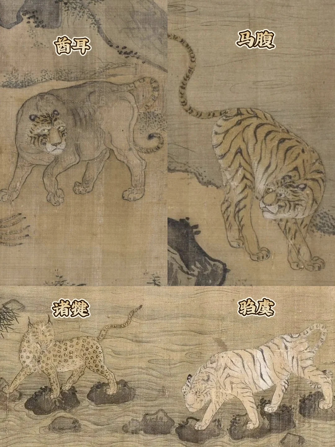 🔸虎豹之像凶猛凌厉,常作怪兽,震慑人心。酋耳身似虎豹,却以虎豹为食;驺虞白虎黑纹,生性仁慈,不蹋青草,不食生物,诸犍人面豹身,牛耳独眼,常口衔长尾,发出巨响。