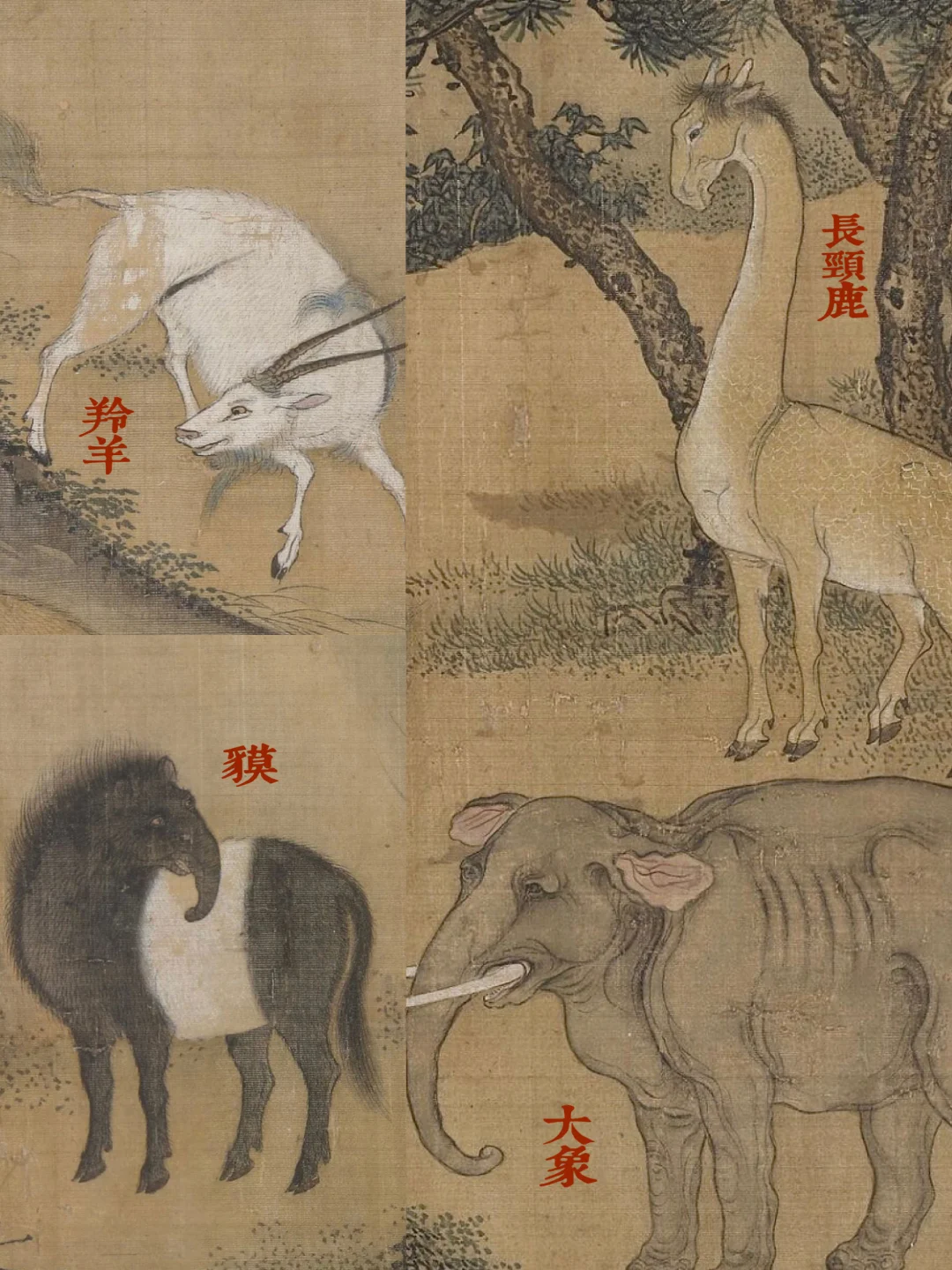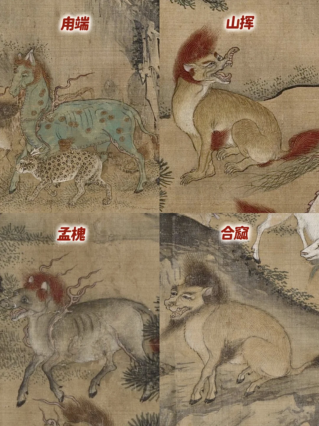 🔸此外,一些奇兽取材其他动物进行再创造。比如甪端,具有犀角、狮身、龙背、熊爪、鱼鳞和牛尾,能日行一万八千里,通晓四方语言,只为明君护航。