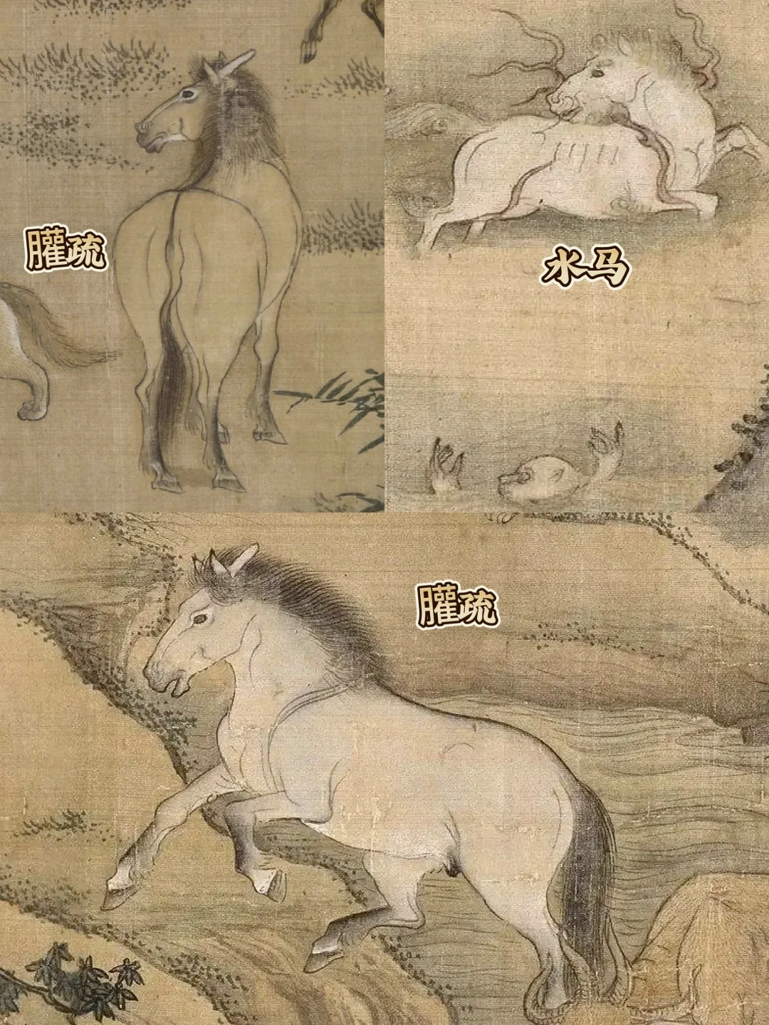 再说马,水马长有花纹臂和牛形尾;䑏疏形状像马,有着错刀般的角,能够劈火。