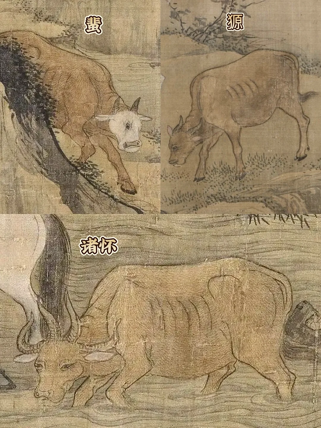 🔸类似牛、马、羊形态的神兽也有很多。先说牛吧,有居于乾山的三足牛—獂,有四角、人眼、猪耳之牛—诸怀,还有一目而蛇尾的凶兽—蜚,其涉过的水会干涸,踏过的草会枯竭。