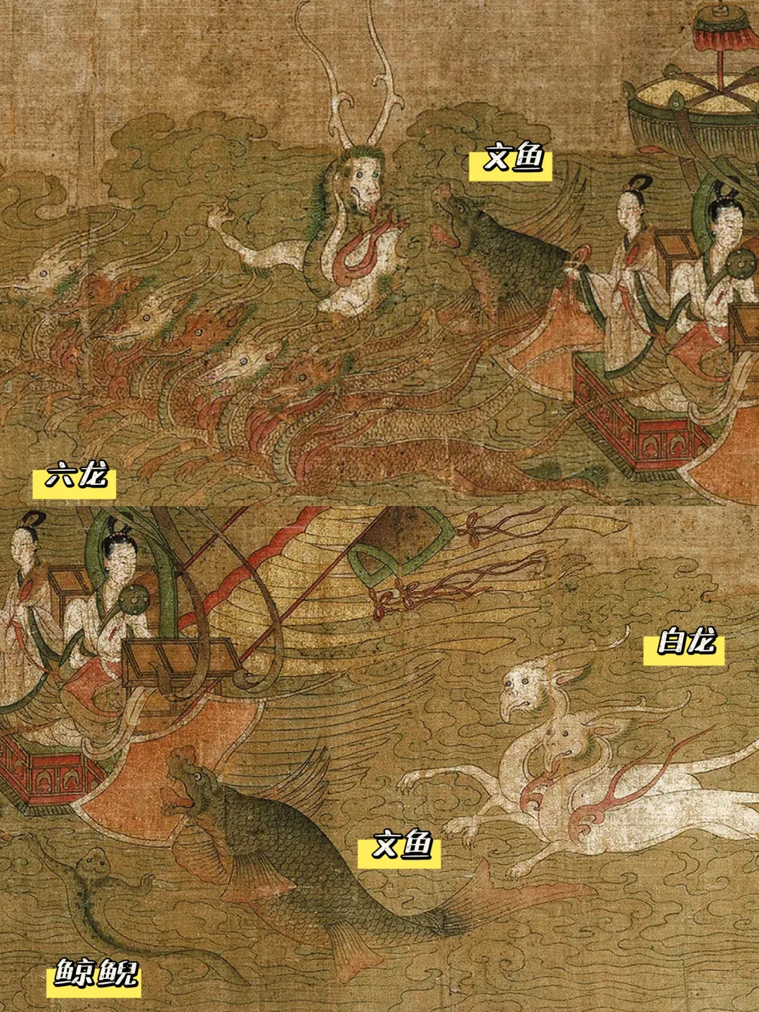 🌊由于人神殊途,洛神只能乘凤鸟与曹植道别,而后,六龙云车自水面升起,玉鸾、文鱼、鲸鯢等神兽相伴左右,她无奈的向远方驶去,眼中饱含不舍。