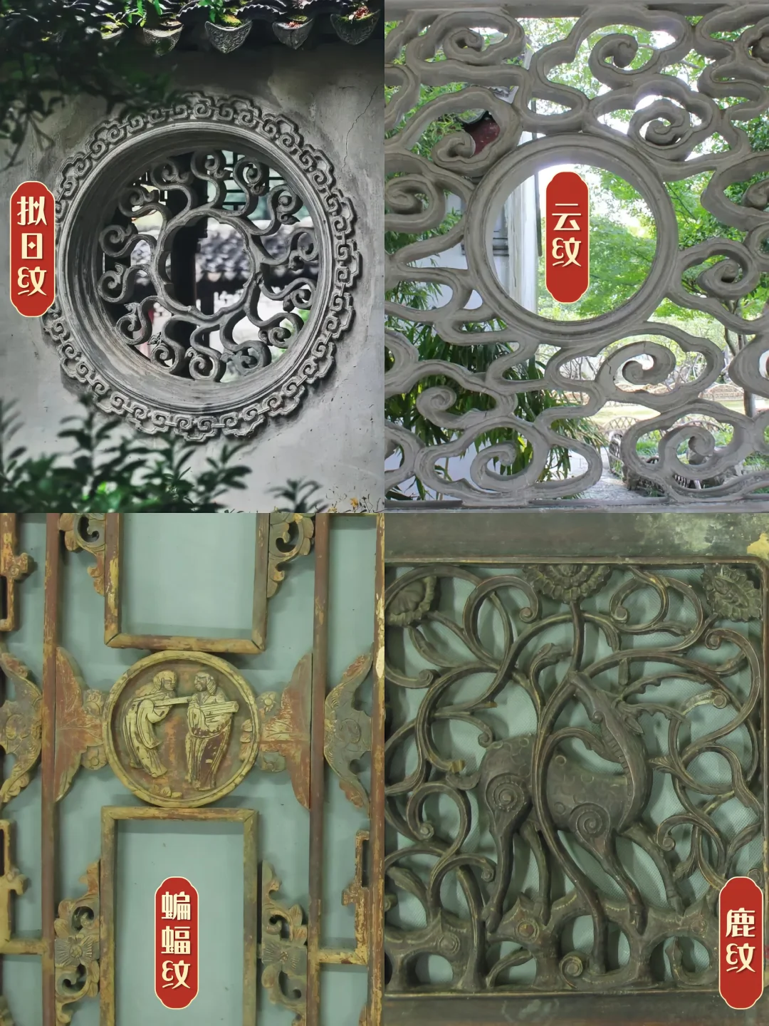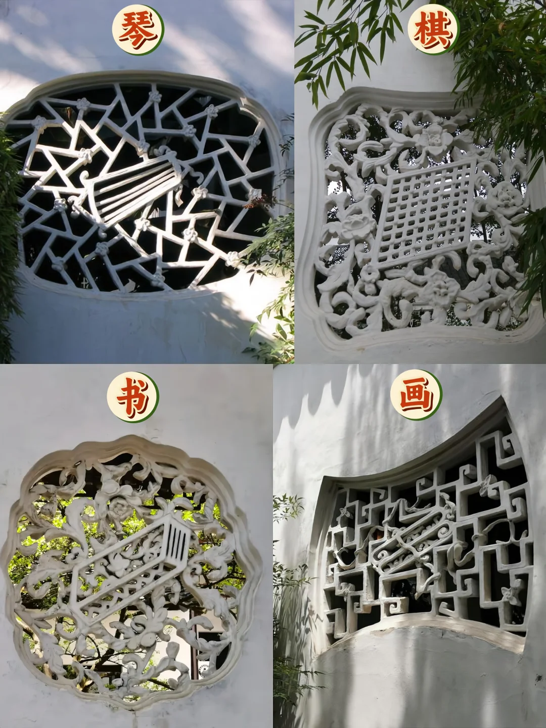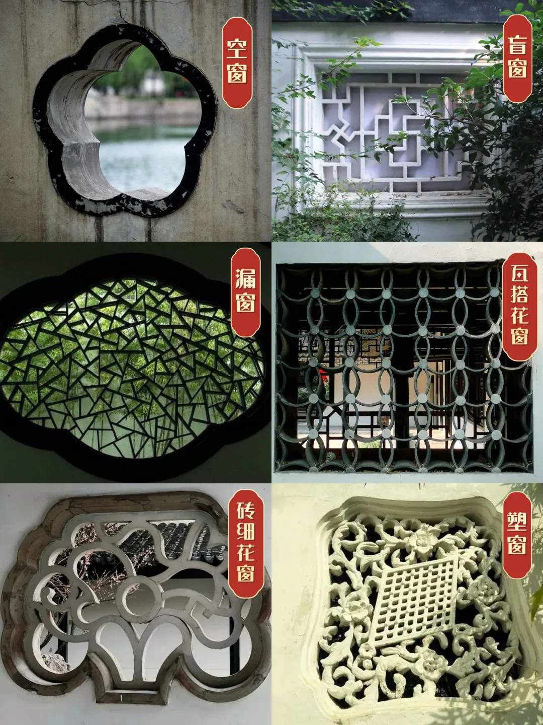 🏞通常,花窗分为没有窗棂,仅有窗洞的“空窗”;装饰墙体,不加通透的“盲窗”,窗棂多样,纹饰各异的“漏窗”。